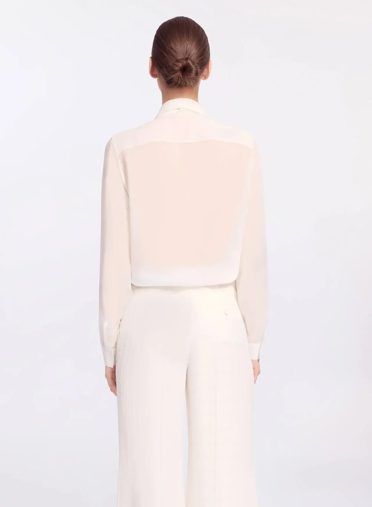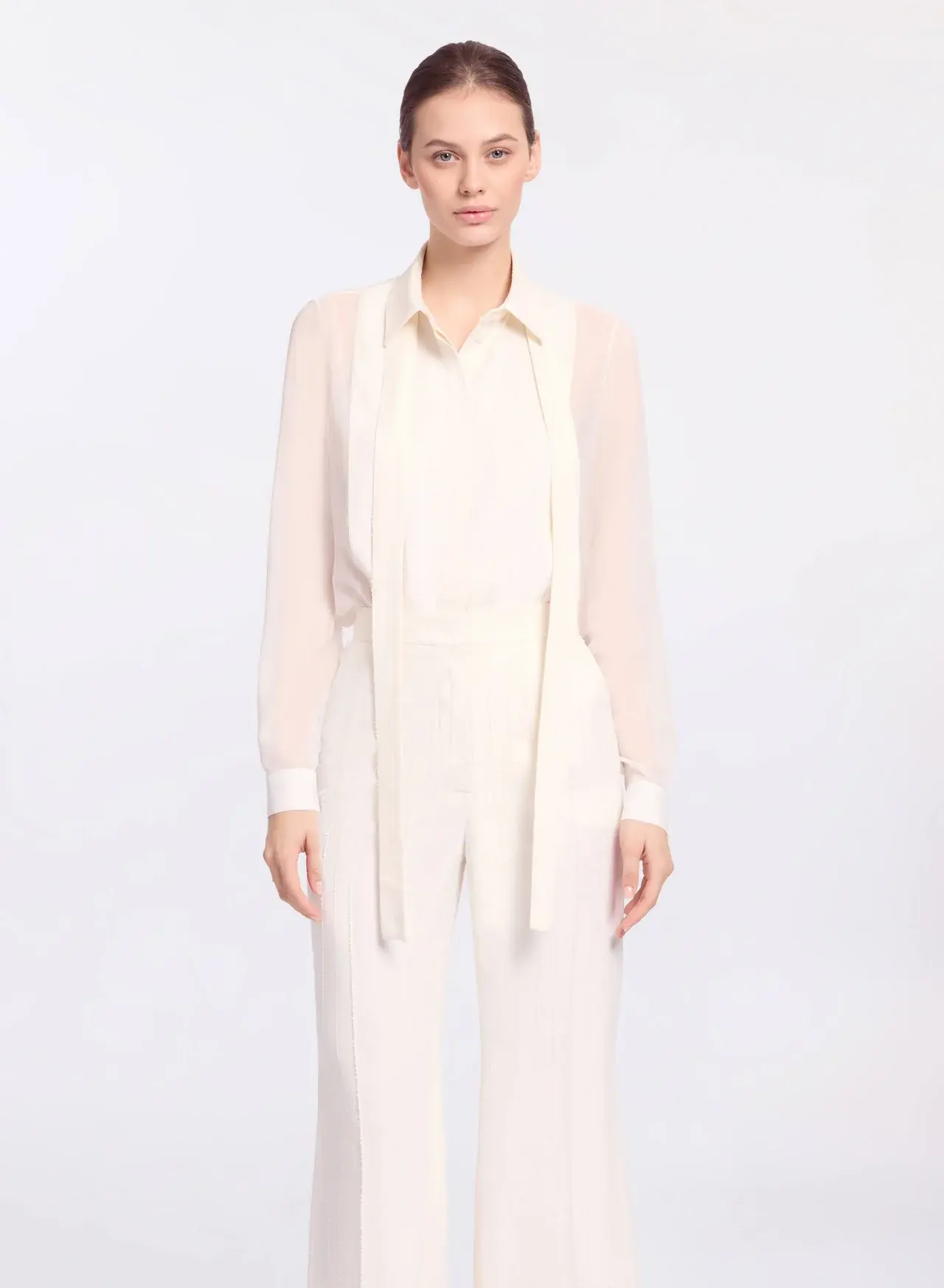 Highlights white pleated front tie neck long sleeves Composition Fabric 100%