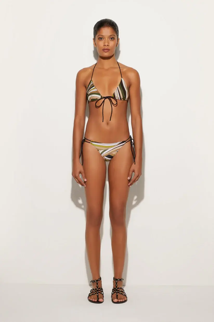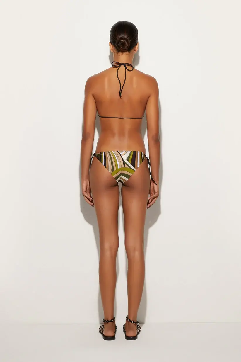 A must-have in your summer wardrobe, these bikini bottoms with adjustable side ties fit your shape perfectly, offering comfort and impeccable style.The Iride Baby print in shades of khaki adds a touch of sophistication, while the UV-treated stretch lycra provides protection and durability, making them ideal for both the beach and the pool. Pair them with the matching top for a fabulous look.