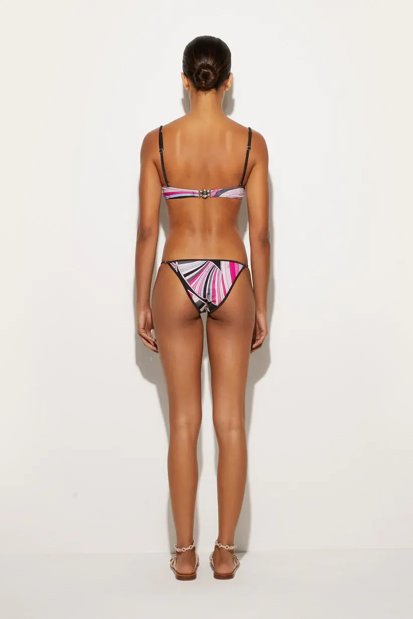 A must-have in your summer wardrobe, these bikini bottoms with adjustable ties on the sides fit your shape perfectly, offering comfort and impeccable style.The Iride Baby print in shades of black and fuchsia adds a lively and sophisticated touch, while the UV-treated stretch lycra provides protection and durability, making them ideal for both the beach and the pool. Pair them with the matching top for a fabulous look.