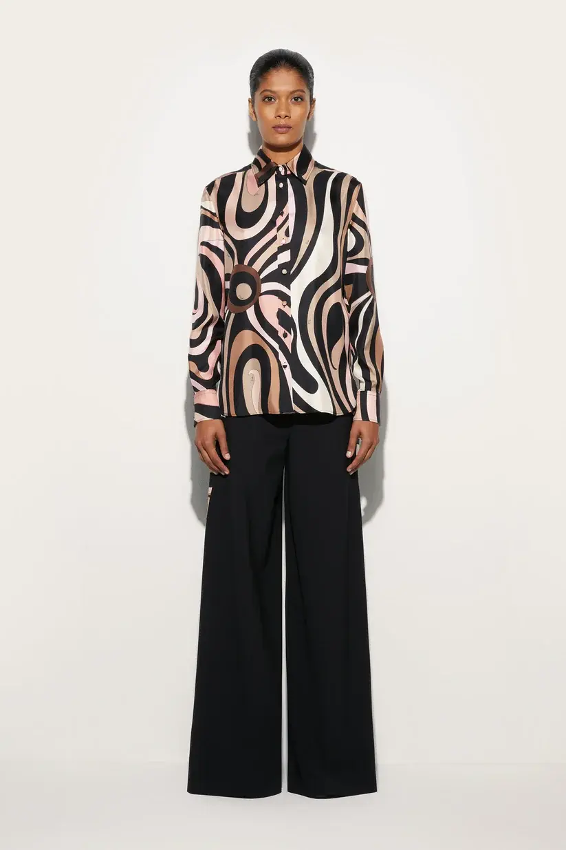 A timeless classic reinterpreted with Pucci's vibrant touch. This long-sleeved shirt, made from pure silk, offers a regular fit that is perfect for any occasion, from work to casual chic events.The Marmo print in black and nude adds depth and dynamism to the design, evoking elegance with a contemporary character.
