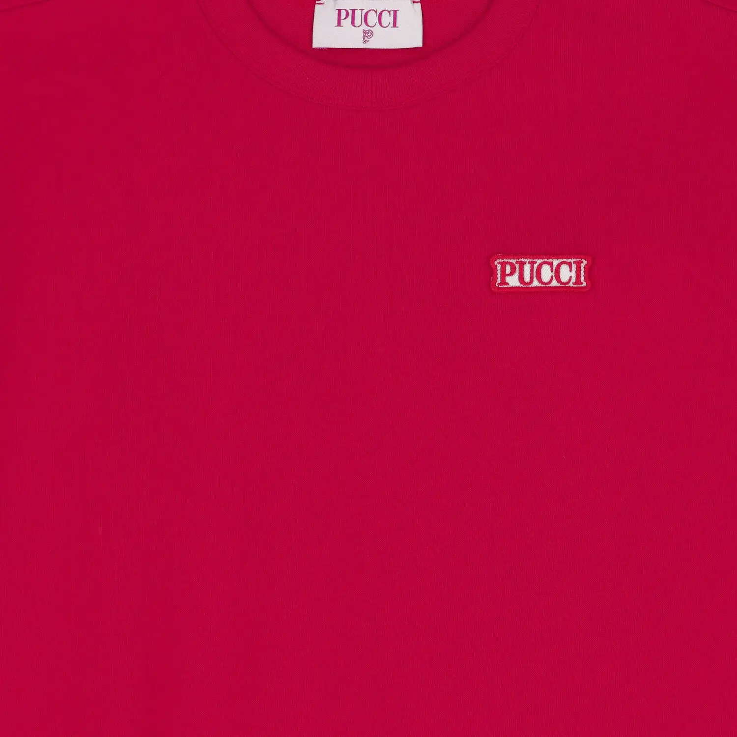 Beautiful red dress for girls by luxury Italian brand Pucci. Made from soft organic cotton jersey, it features the brands logo patch on the chest and flared Iride hem.