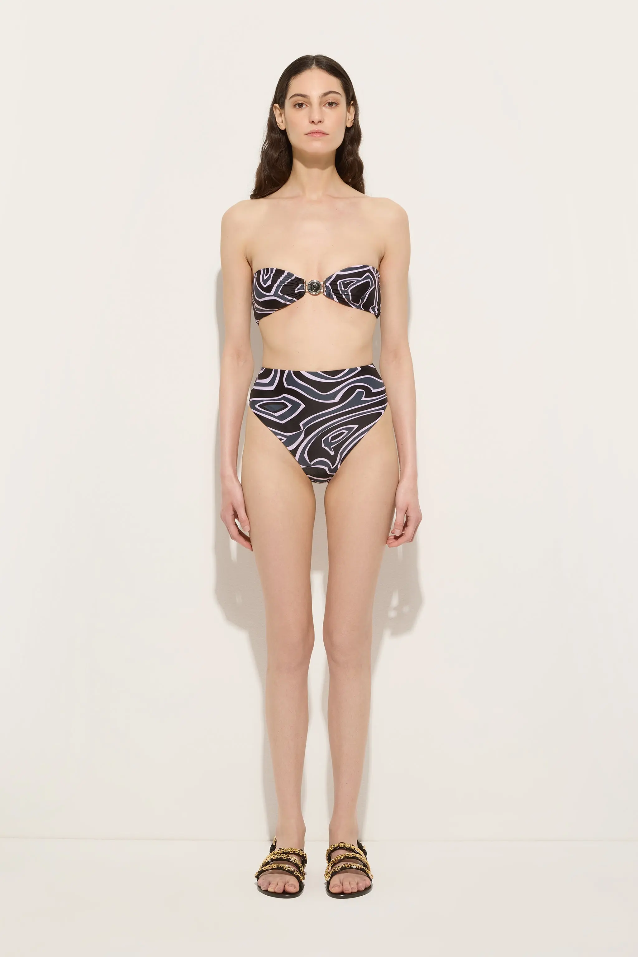A timeless classic, reinterpreted with the unmistakable Pucci touch. These high-waisted bikini bottoms combine style and comfort in a simple yet sophisticated design. The elasticated waistband elegantly emphasizes and sculpts the silhouette, offering a flawless fit and a touch of modernity. Made from stretch Lycra with UV protection, they are perfect for days in the sun, guaranteeing protection and durability without compromising on lightness. The black and pink Labirinto print adds a distinctive graphic touch, perfect for those who love refined elegance even at the beach. Pair it with the matching top for a total Pucci look.