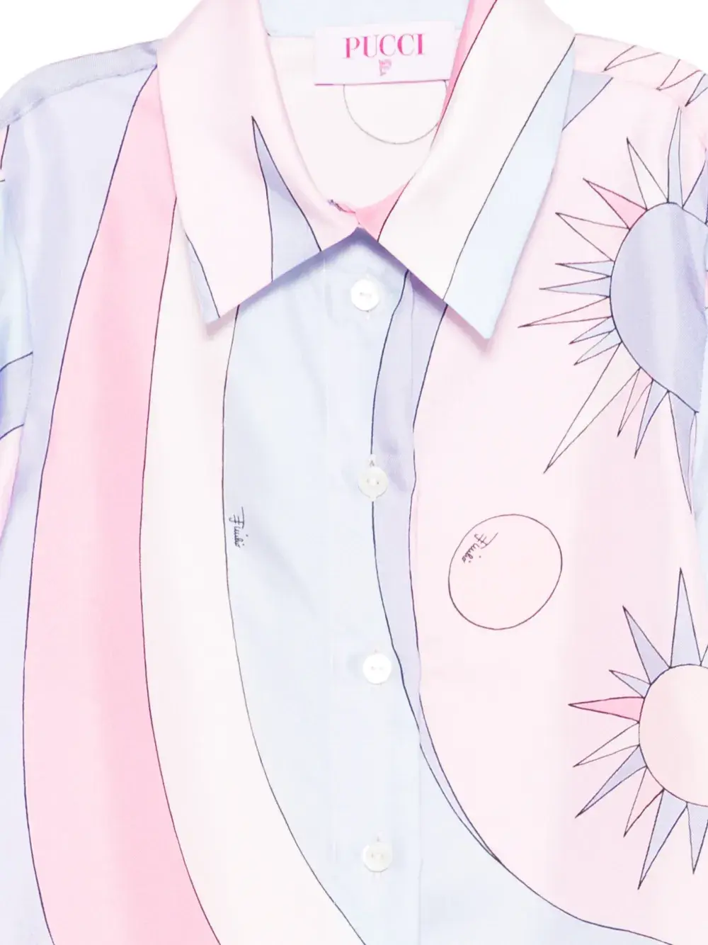 lilac purple graphic print button fastening point collar long sleeves buttoned cuffs Made in Italy
