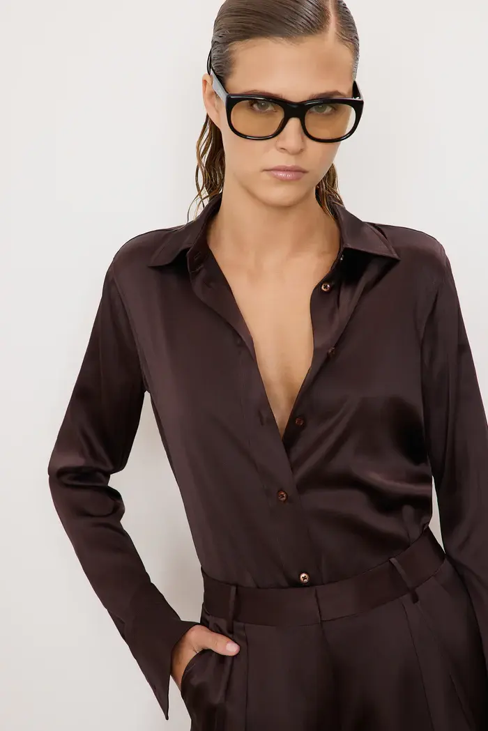 ÉTERNE's Constance Top is crafted from our luxe silk, offering a tailored fit and classic feel—a versatile essential for day to night.