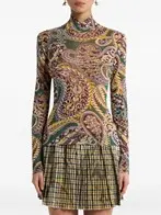 Slim-fit sweater with long sleeves and turtleneck. The item, made from see-through-effect tulle, features an all-over Paisley print. The item was presented at the Autumn-Winter 25 Runway Show.