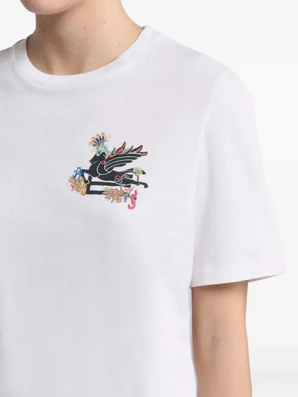 T-shirt in pure with a pegaso iconic symbol moto Etro presents short sleeve crew and straight edge an essential garment with a distinctive touch