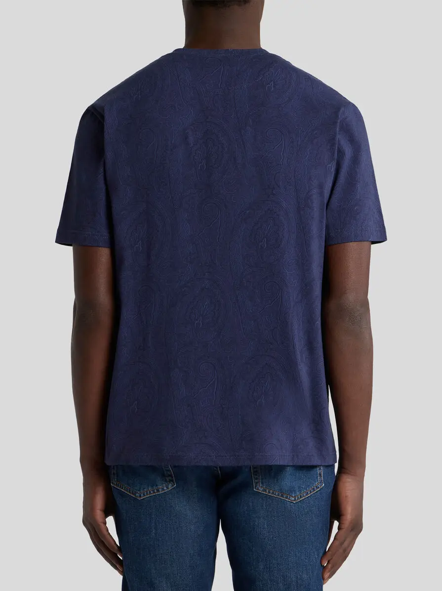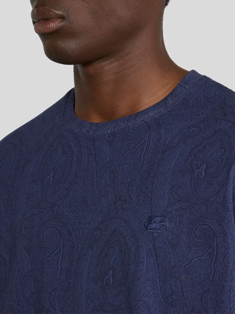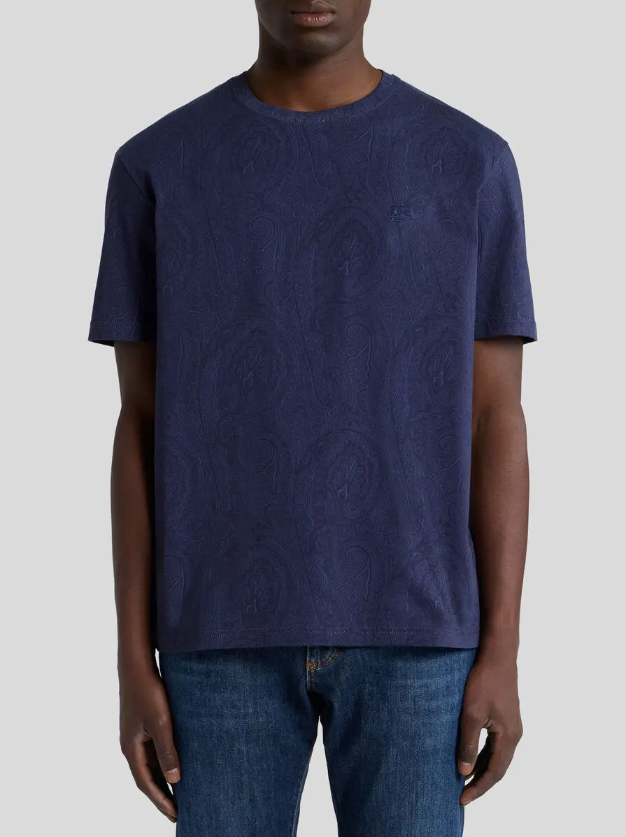 Pure cotton crew-neck T-shirt with short sleeves. This model stands out for its iconic, tone-on-tone all-over Paisley motif. • Regular fit • Crewneck • Short sleeves