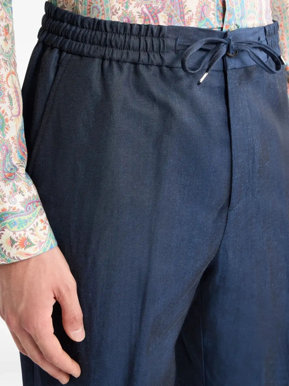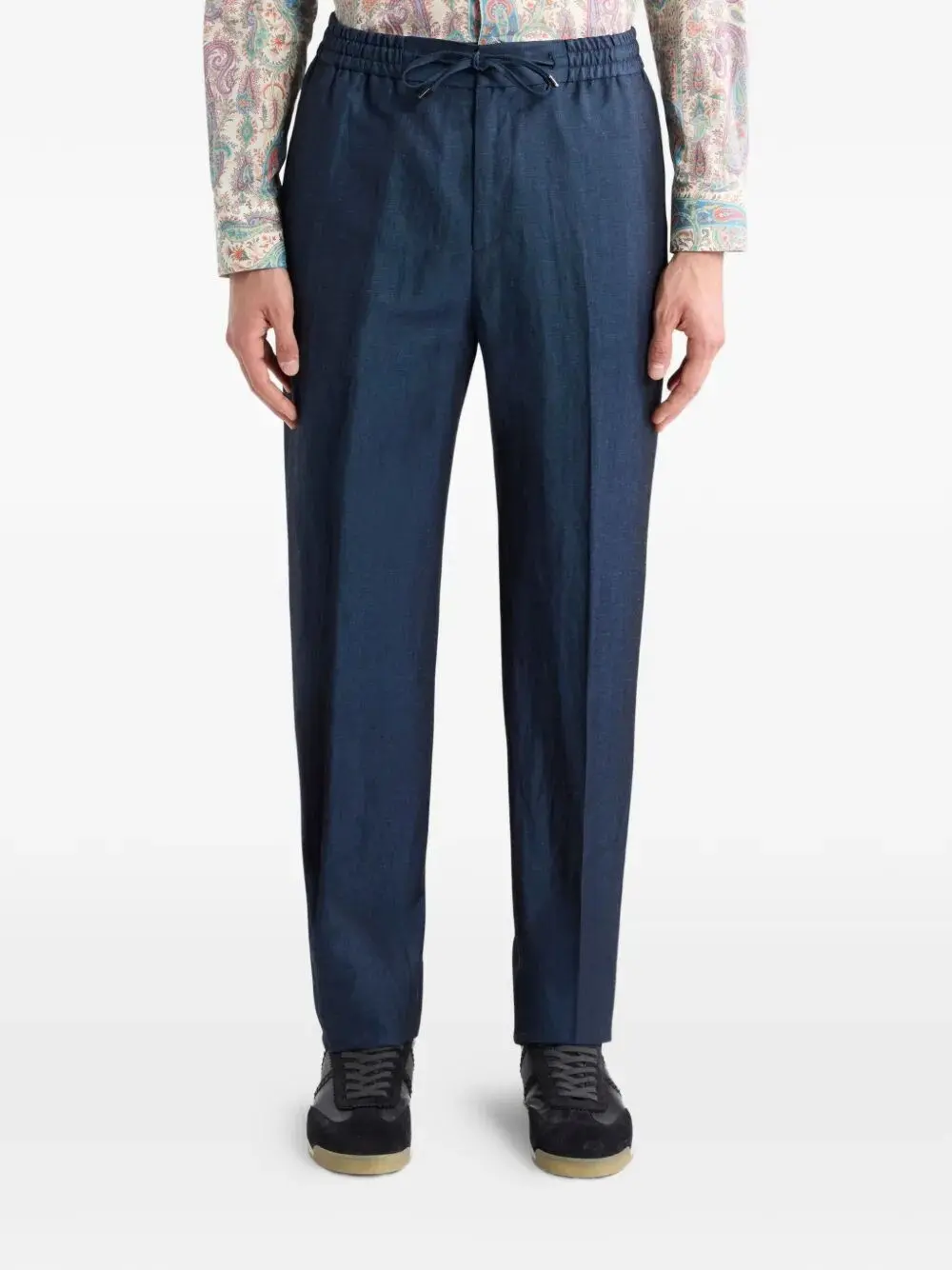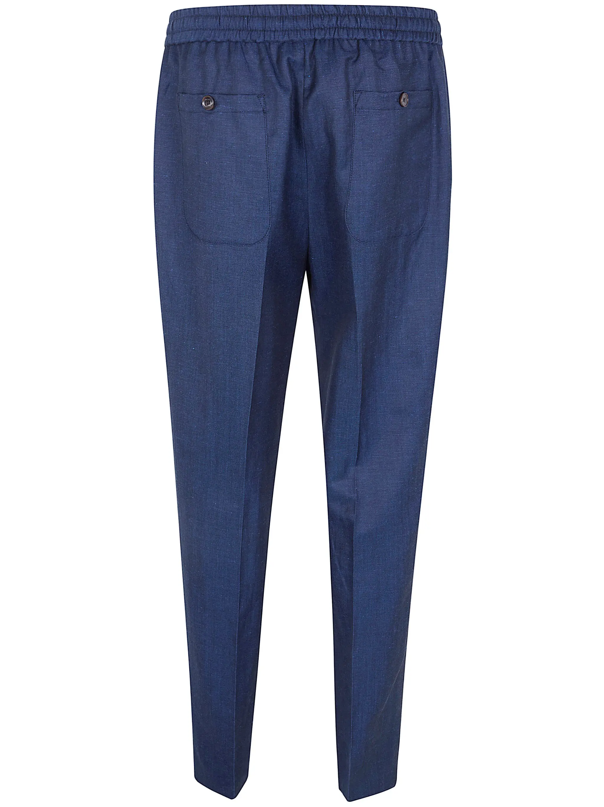 Introducing the 'Regular Trousers' from ETRO, a luxurious addition to your wardrobe. Crafted from a sophisticated blend of 51% wool and 49% linen, these trousers exude elegance in a chic Blue hue. Made in Italy, they embody artisanal craftsmanship and attention to detail. With their tailored fit, they are perfect for both casual outings and formal occasions. Pair them with a crisp white shirt or a stylish blazer for an effortlessly refined look. The lightweight fabric ensures comfort while maintaining a polished silhouette, making them ideal for the modern gentleman seeking versatility and sophistication.