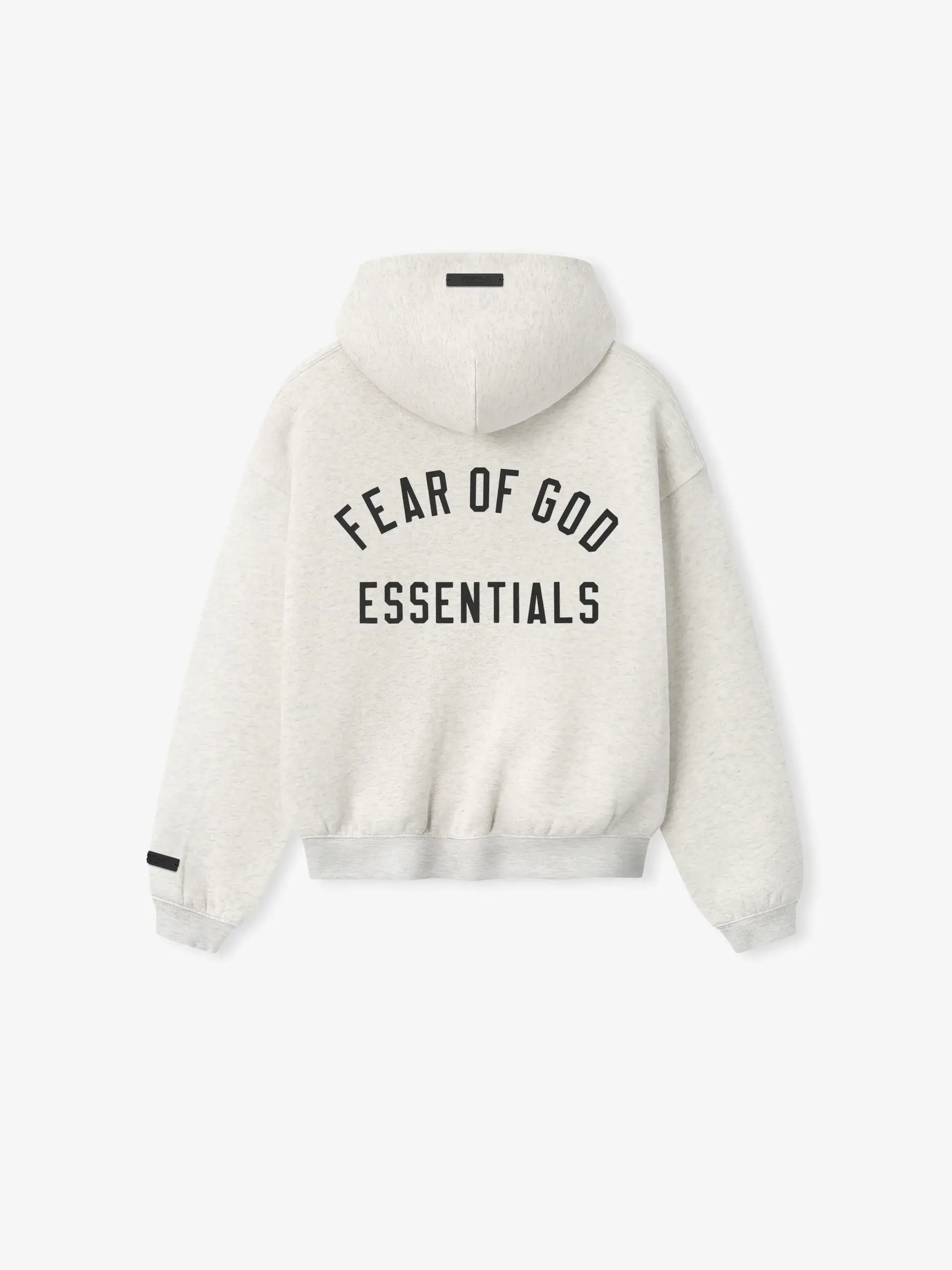 The Kid's Classic Full Zip Hoodie is crafted from 380GSM core fleece, delivering a substantial feel with balanced comfort and structure. The HD-printed Fear of God Essentials logo is branded on the back. Details include a double-layer hoodie, side pockets, rib-knit cuffs, waist-hem, and Essentials Fear of God label on the hood edge