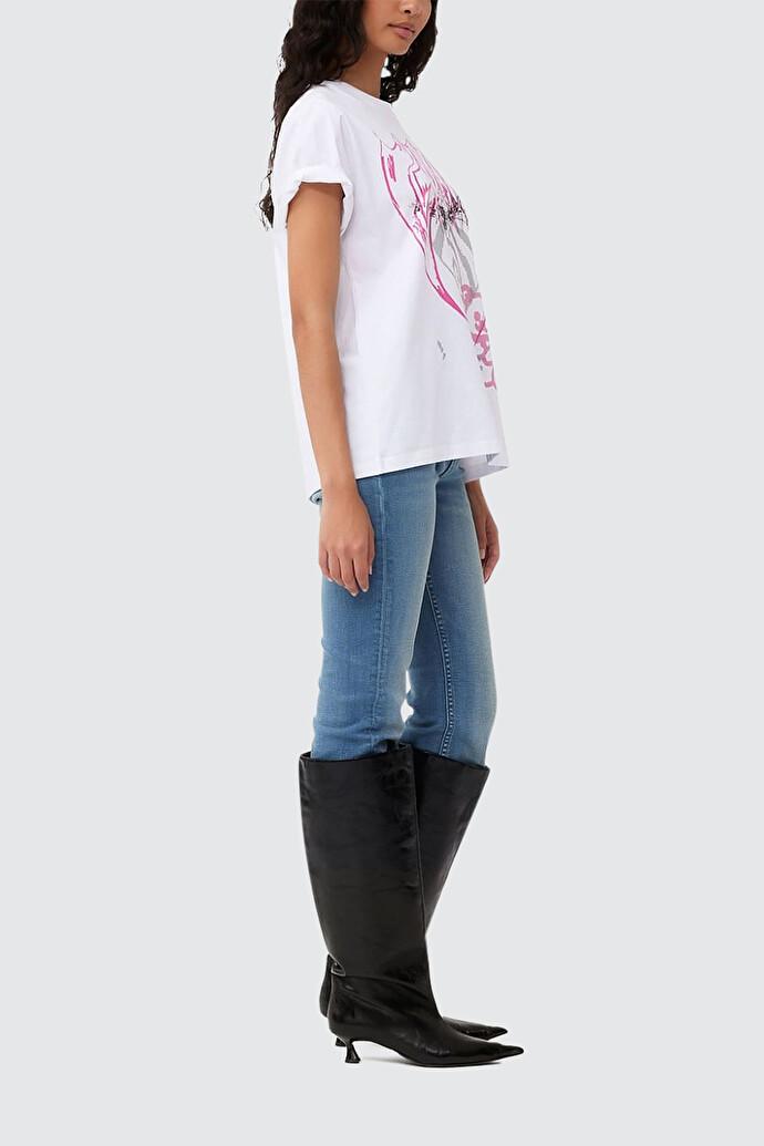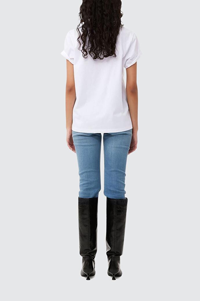 T-Shirt Element Ganni in cotone girocollo, maniche corte, orlo dritto. Colore: Bright white