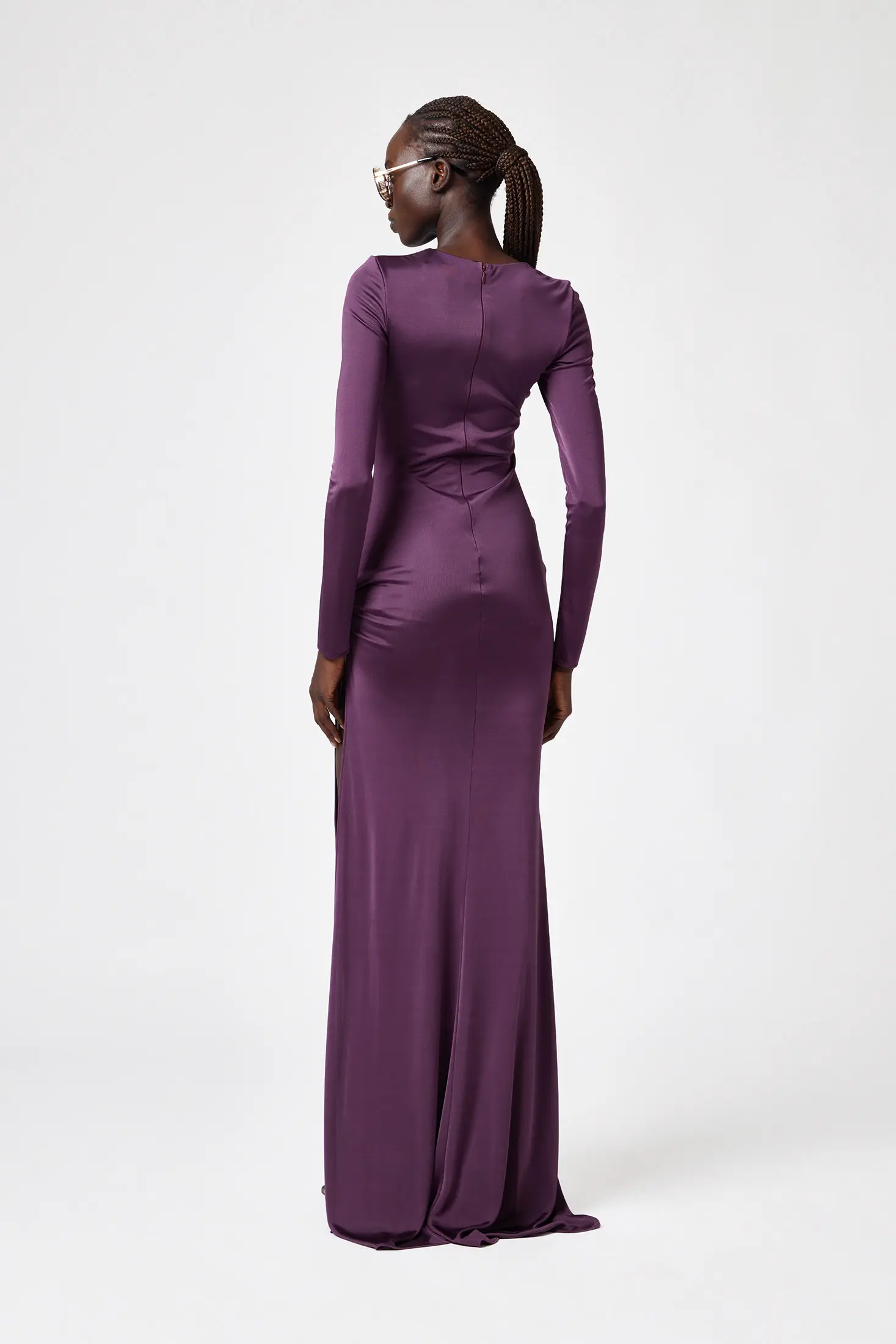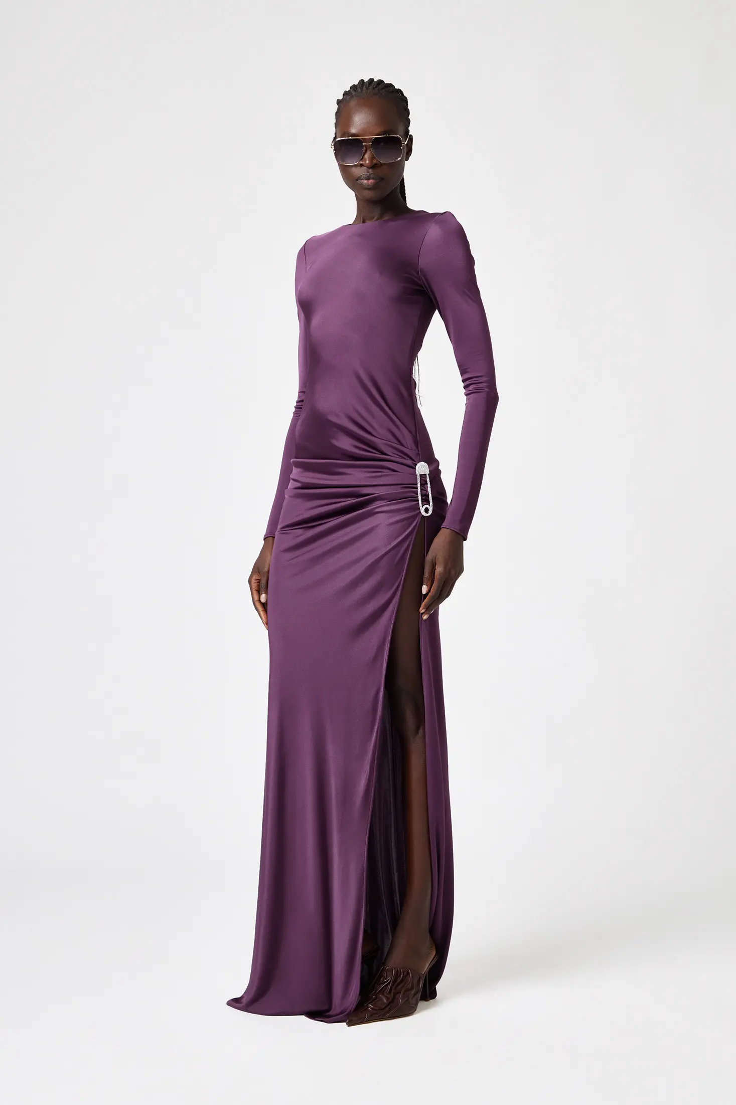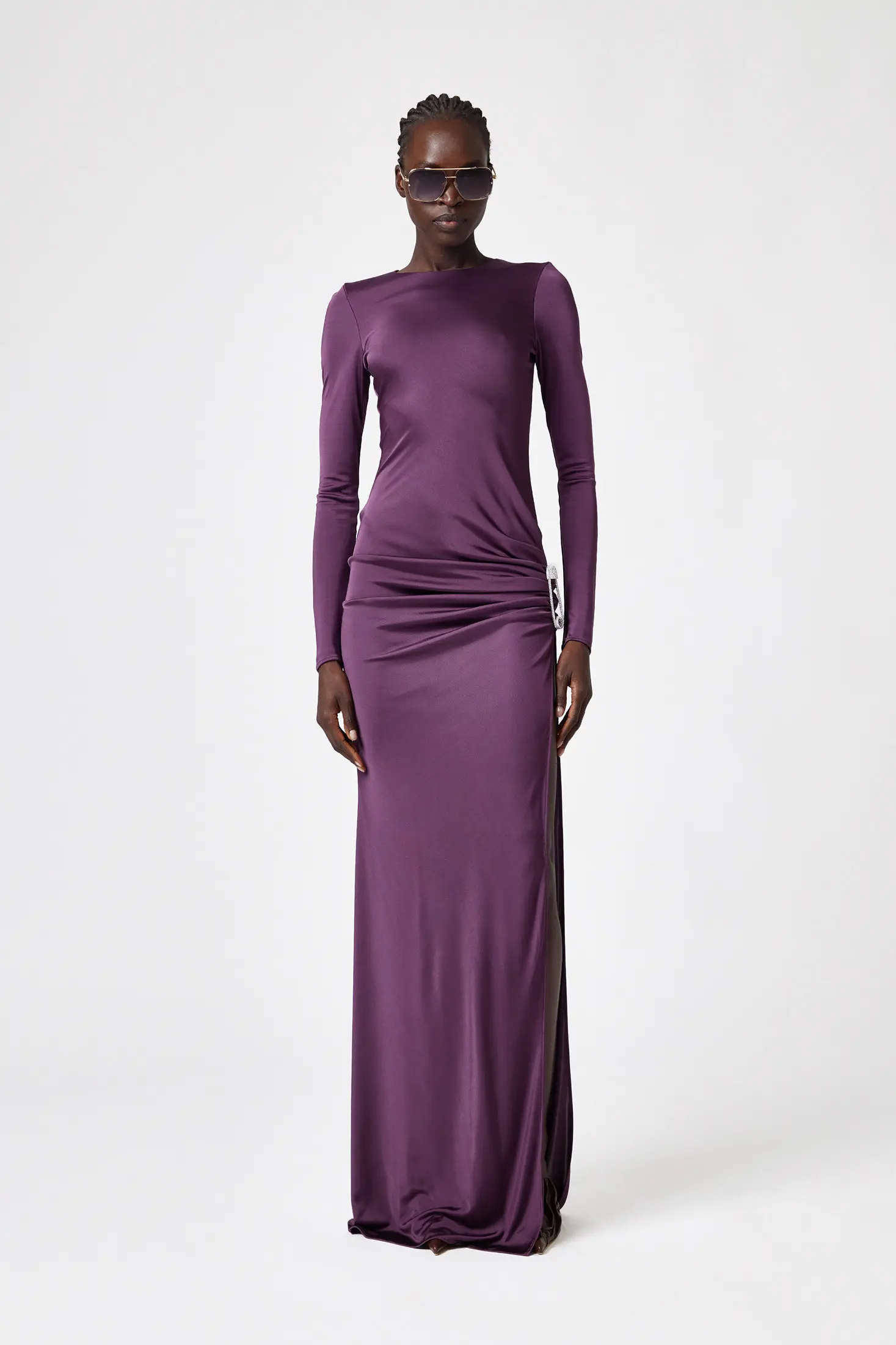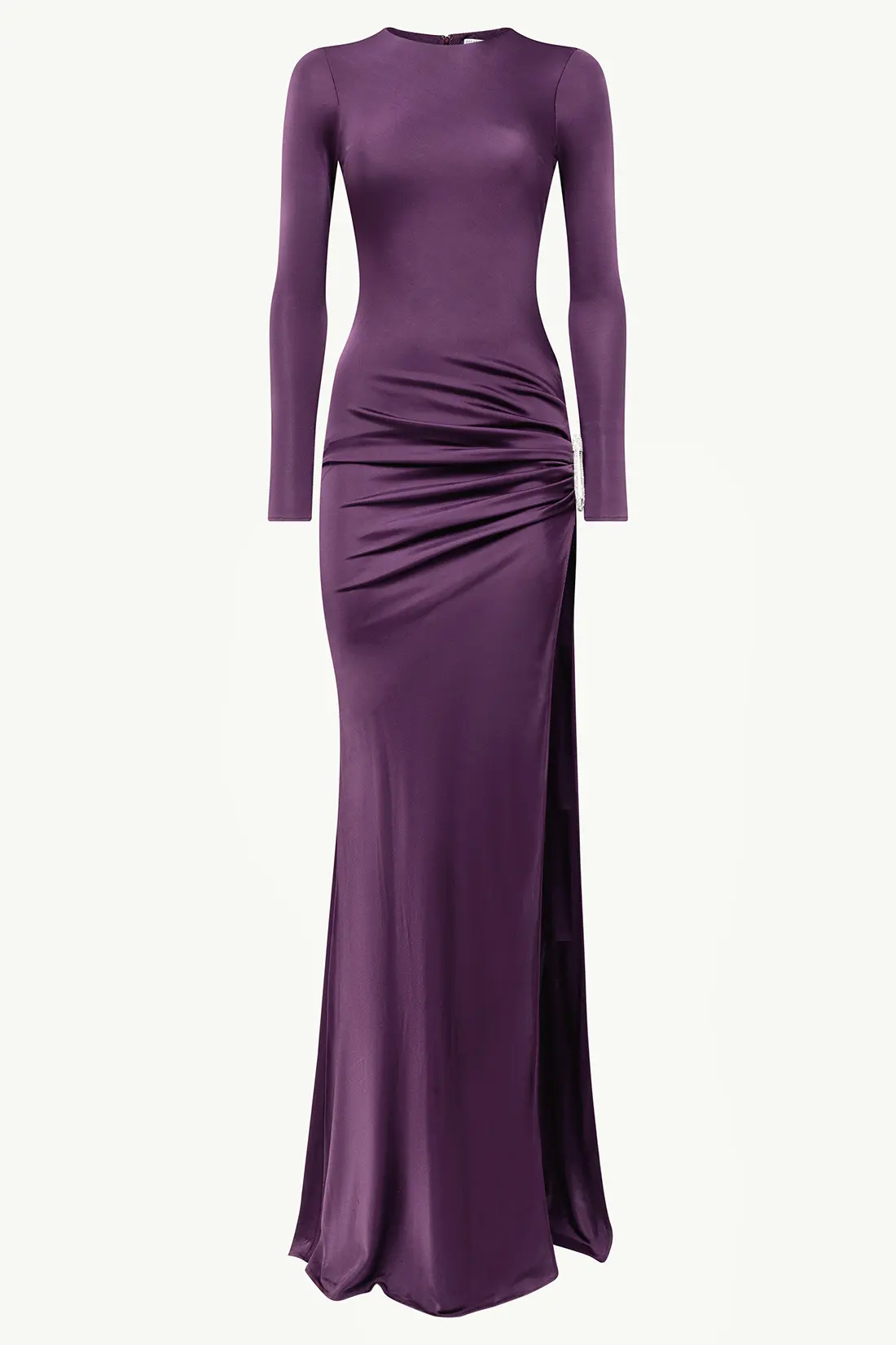 Details GRIPPED DETAIL ON THE SIDE WITH JEWEL BROOCH LONG SLEEVES ZIP CLOSURE ON THE BACK Flared at the bottom SLIM FIT COMPOSITION: 100% VISCOSE