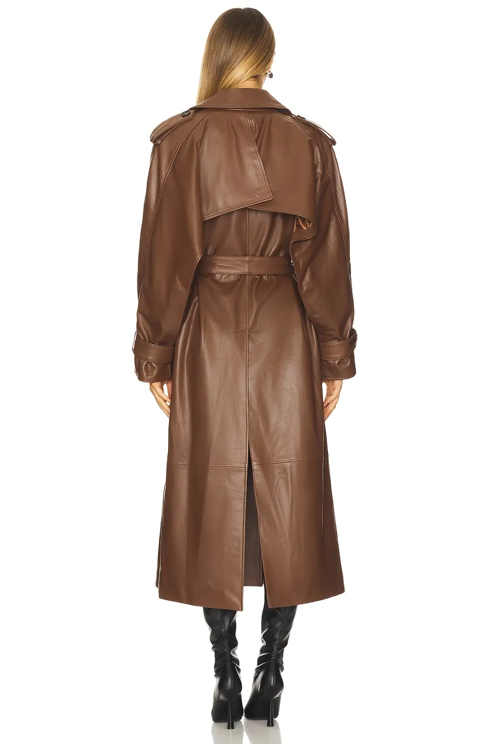 CLASSIC COLLAR WITH LAPELS DOUBLE-BREAST STYLE WITH BUTTONS AT FRONT LARGE FLAT POCKETS WITH BUTTONS AT FRONT WAIST BELT LONG SLEEVES STORM FLAP AT BACK FULLY LINED REGULAR FIT COMPOSITION: 100% LAMBSKIN