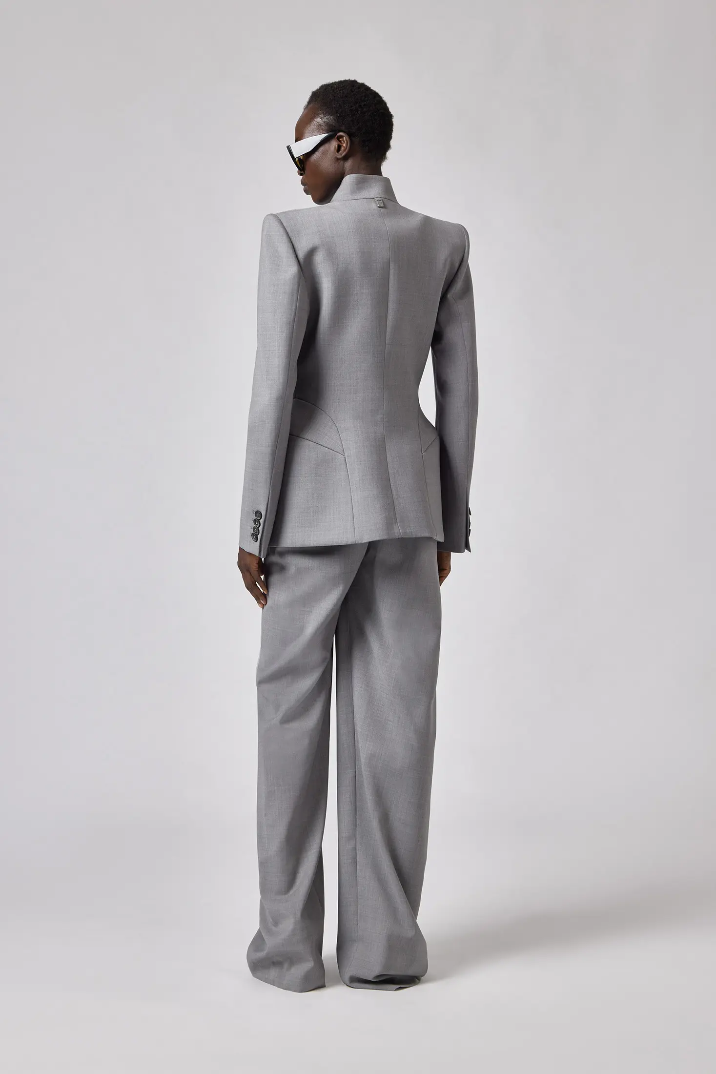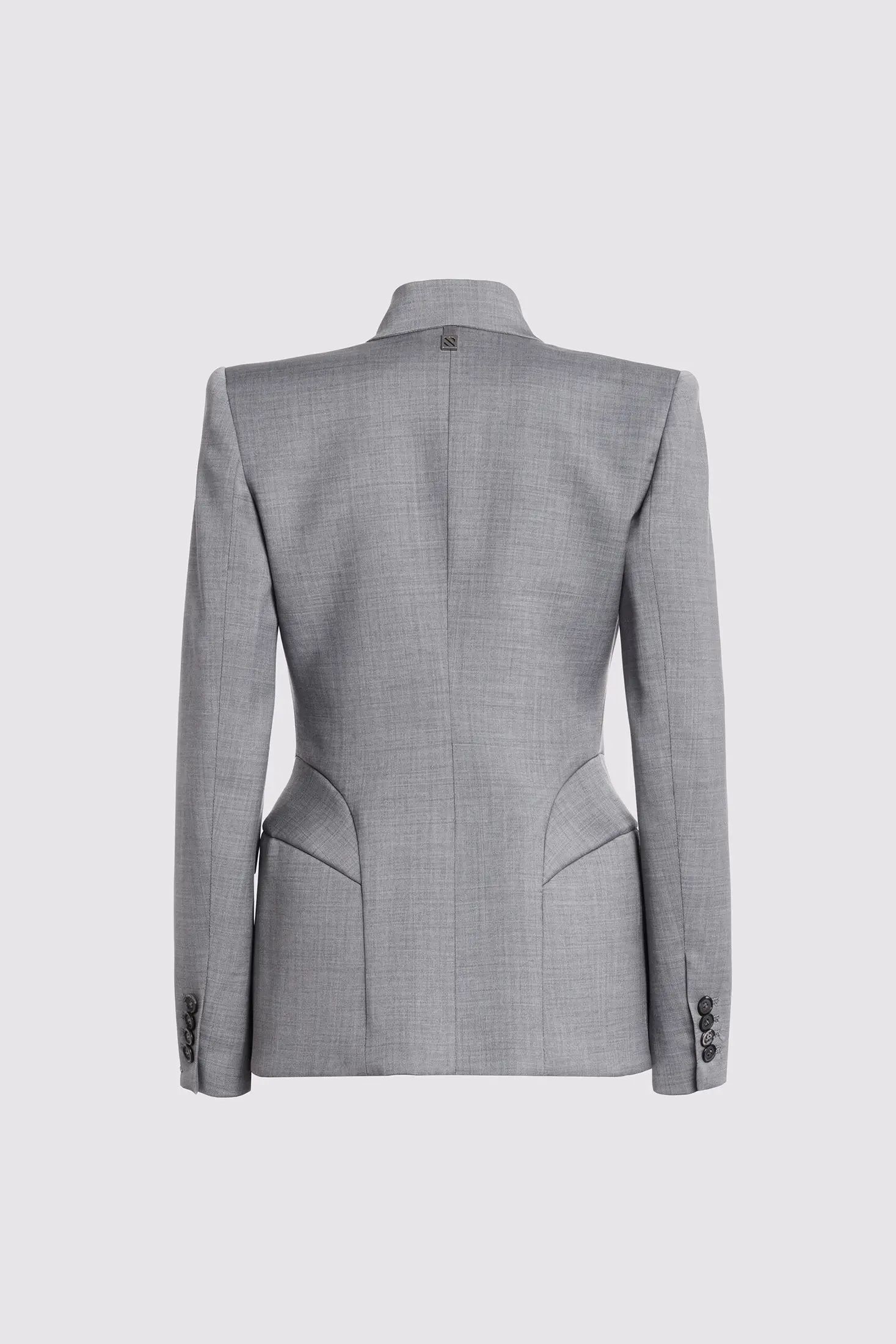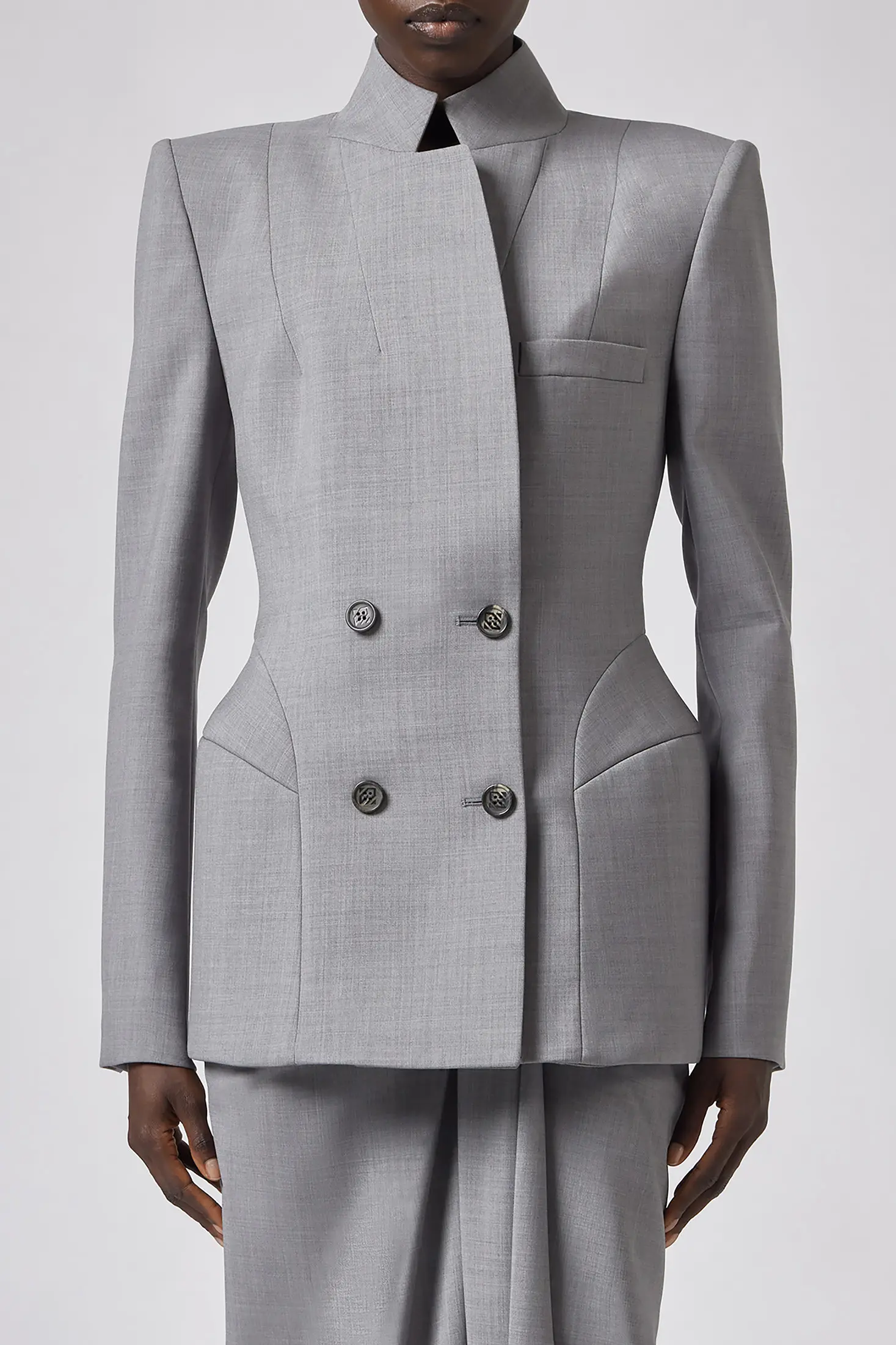 MADE IN ITALY DOUBLE-BREASTED JACKET Details MANDARIN COLLAR WELT POCKET AT CHEST LONG SLEEVES WITH BUTTONS STRUCTURED WAIST LINED SLIM FIT MODEL WEARS SIZE 38 AND IS 178 CM TALL COMPOSITION: 100% WV