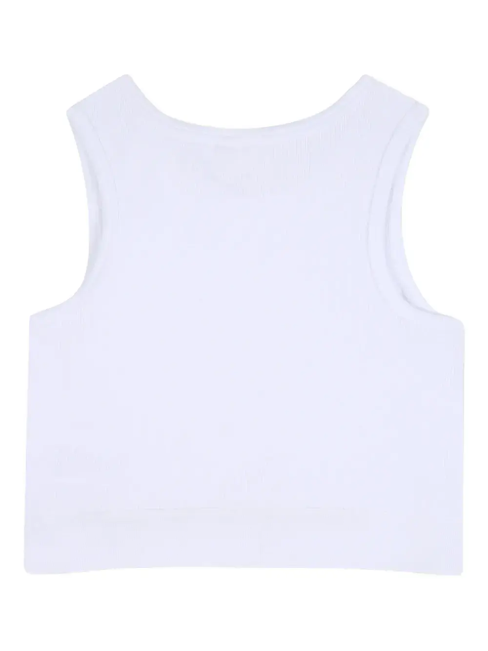 white ribbed round neck sleeveless logo print Composition Fabric 100%