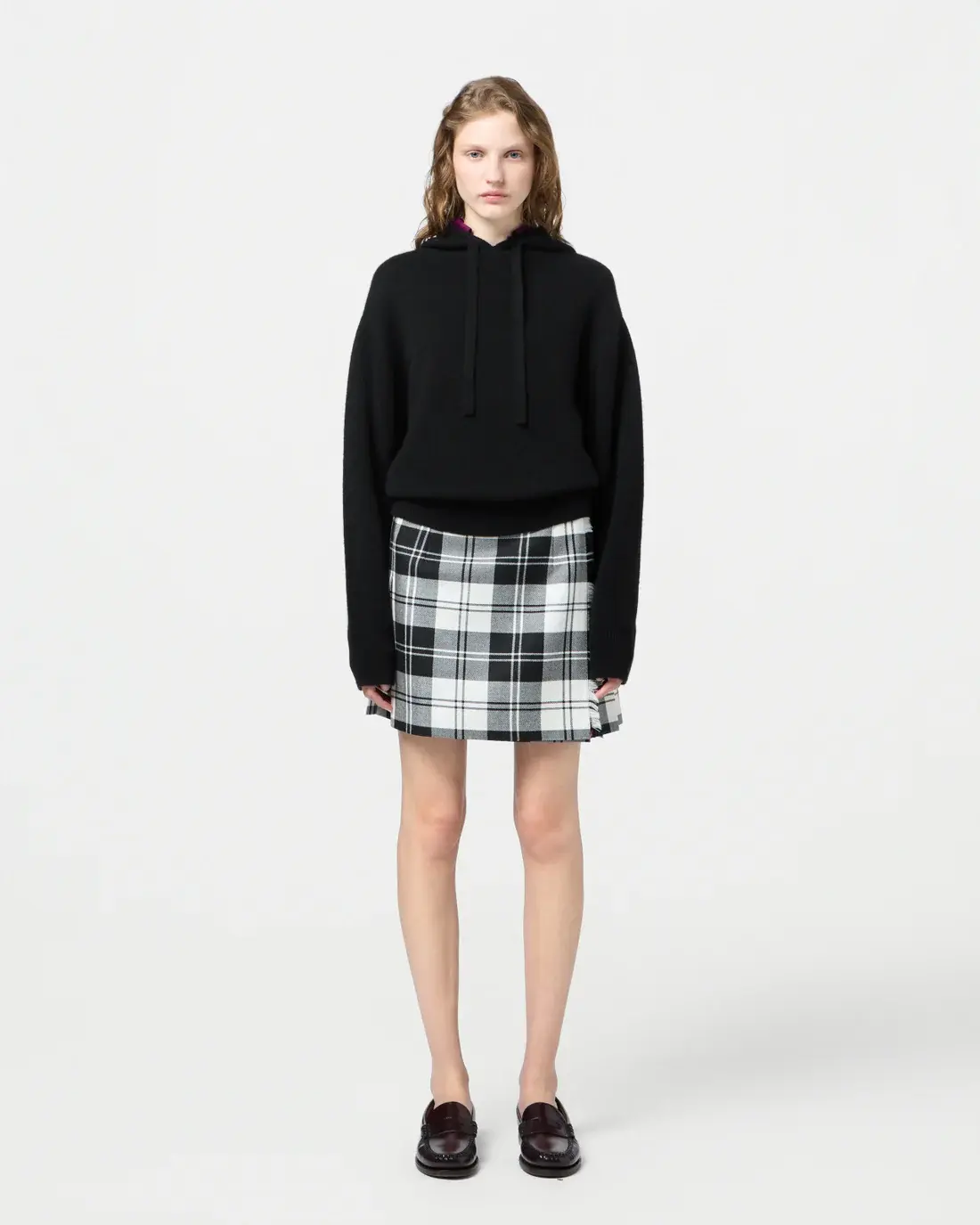 MID-WEIGHT JERSEY HOODIE HOOD With DRAW STRINGS RIB CUFF + HEM Signature GIR branding at center back neck 100% CASHMERE FLOOR IS 5' 10" / 178 CM and is wearing a small.