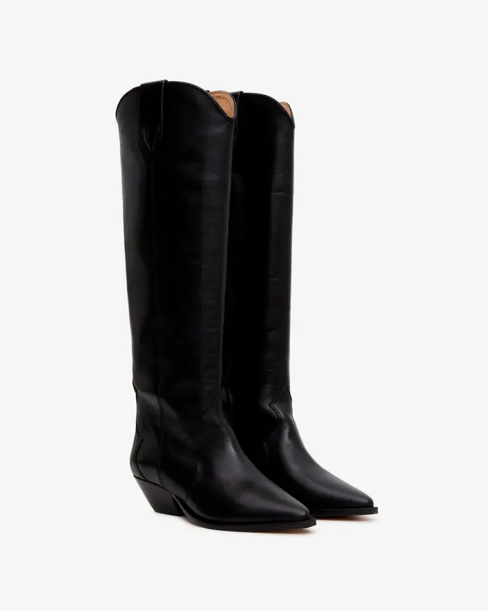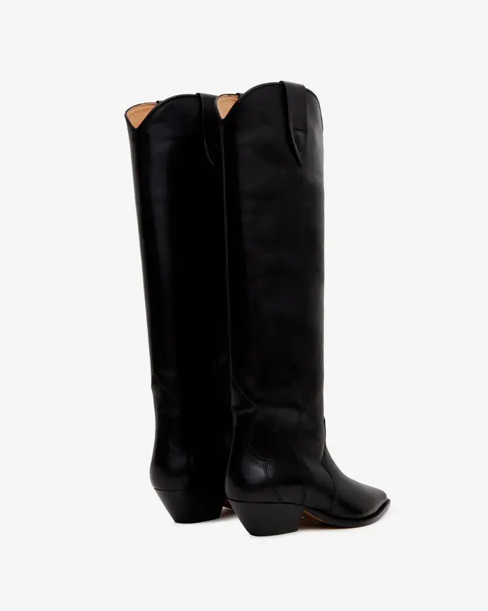 Cowboy boots in calfskin leather Smooth leather uppers with round yokes Pull tabs Pointed toes Laminated Cuban heels Soft leather insoles and outsoles Soft leather lining