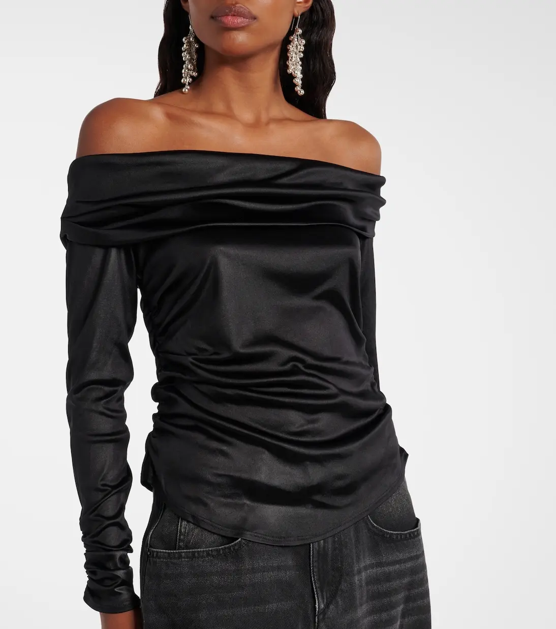 Isabel Marant captures the essence of Parisian cool with designs that blend effortless style, contemporary tailoring, and laid-back elegance. The long-sleeved Enesa top boasts a flattering off-shoulder silhouette with elegant drapes.