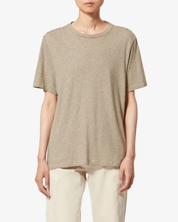 Cotton and linen T-shirt Striped pattern Round neckline Short sleeves Relaxed fit