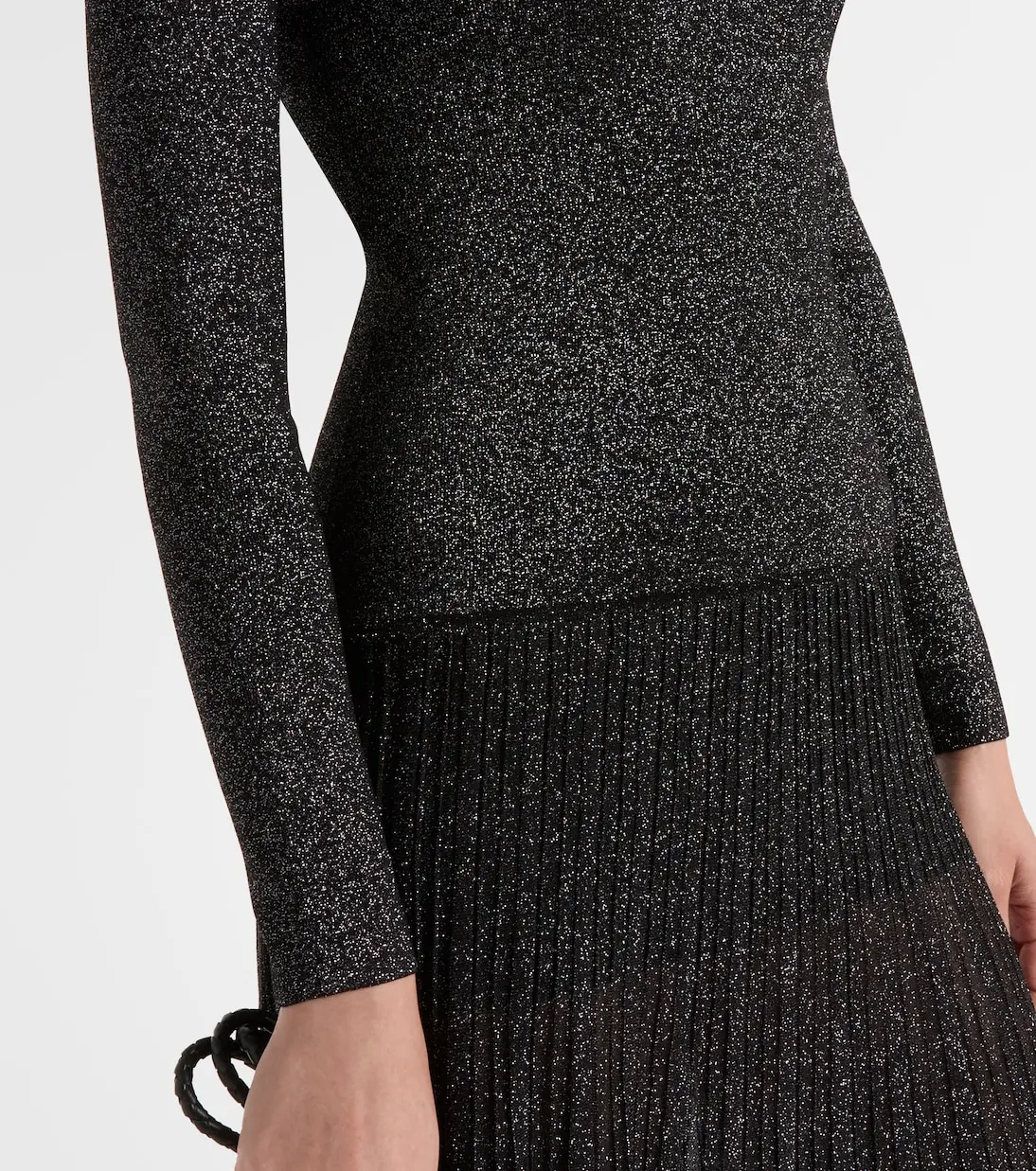 Known for its effortless Parisian chic, Isabel Marant blends relaxed elegance with modern edge. The Guetty maxi dress exemplifies this aesthetic, featuring a shimmering, long-sleeved bodice paired with a pleated skirt for added sophistication.