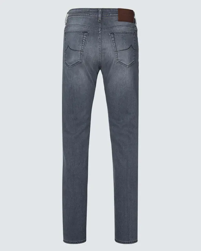 Jeans Bard in denim di cotone stretch con chiusura a bottoni cinque tasche etichetta in pelle e taglio slim