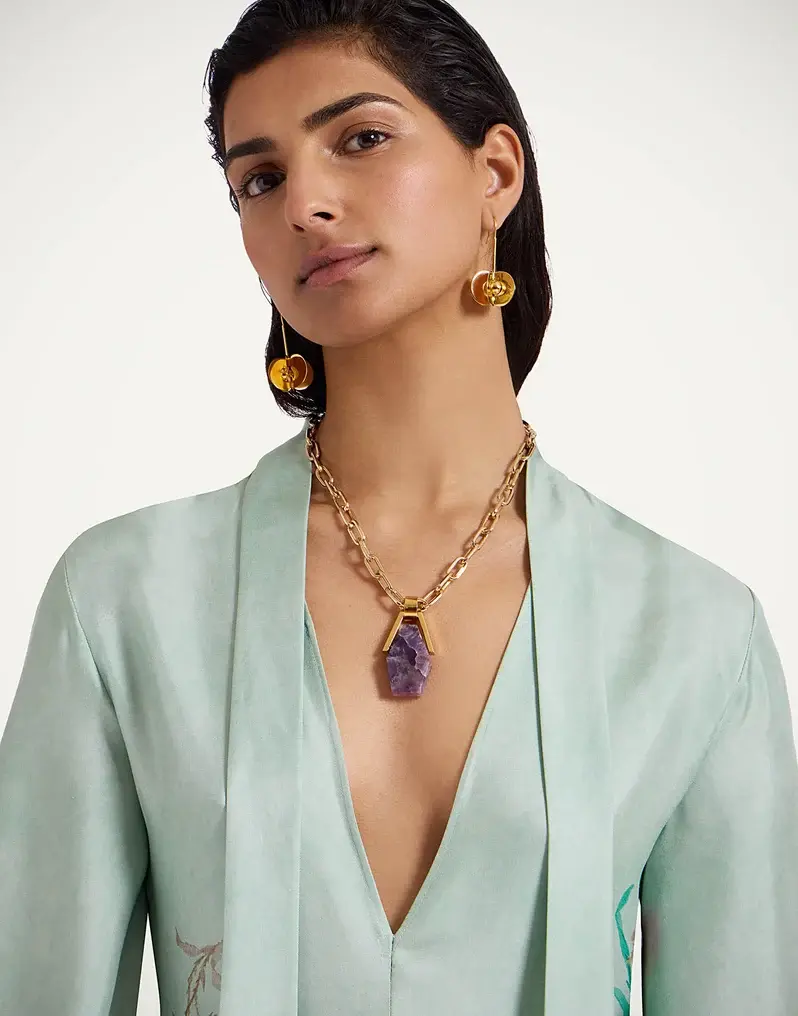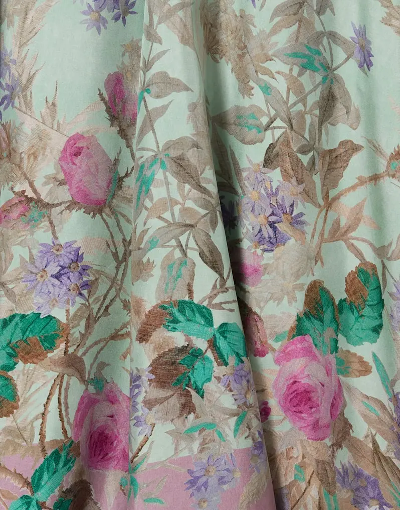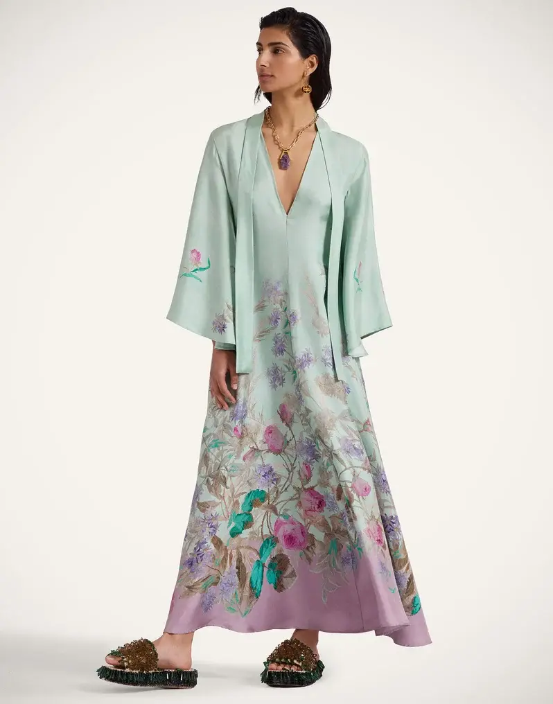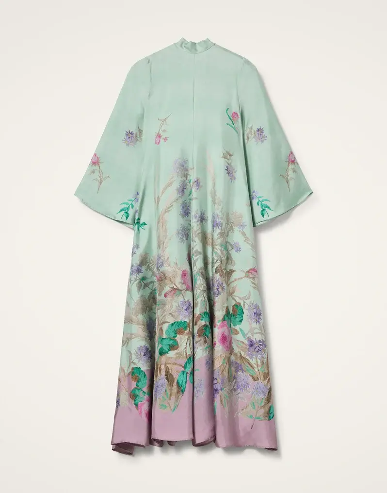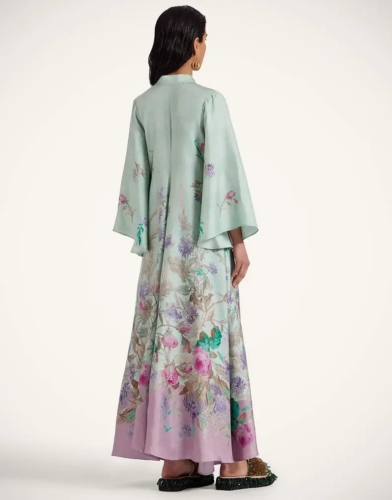 Shouldn't every babe have a dress called the Magnifico hanging in her closet? La DoubleJ believes so! With a stand-up collar, long sash at the back and draped waterfall sleeves, this special number will glide you around the room with an ease and an elegance reserved for the most exclusive of occasions. Cut in our Como-made silk twill with a subtle sheen, it exudes chic Italian elegance in this dazzling print, exquisitely placed by artisan hands.