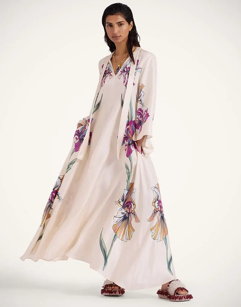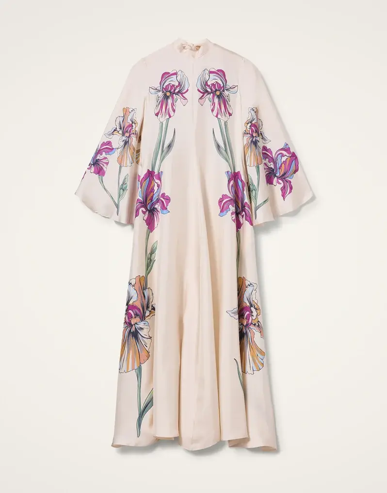 Shouldn't every babe have a dress called the Magnifico hanging in her closet? La DoubleJ believes so! With a stand-up collar, long sash at the back and draped waterfall sleeves, this special number will glide you around the room with an ease and an elegance reserved for the most exclusive of occasions. Cut in our Como-made silk twill with a subtle sheen, it exudes chic Italian elegance in this dazzling print, exquisitely placed by artisan hands.