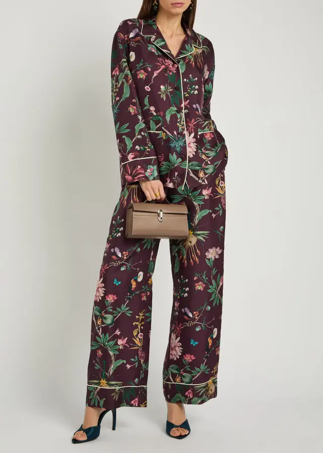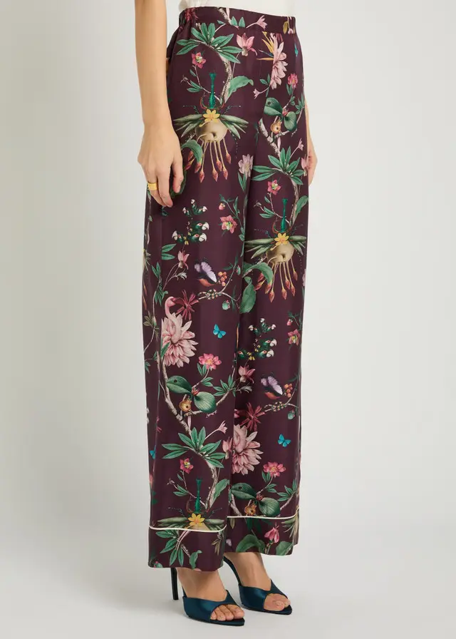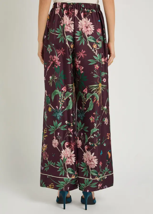 rinted, partially elasticated waist, faux fly, side slip pockets Pull on 100% silk Dry clean