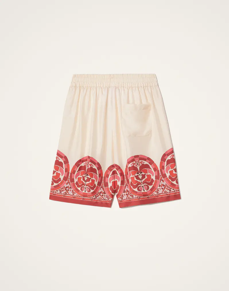 Bermuda shorts are back baby, and more bella than ever. Delivered in Italian silk twill with a perfectly placed in-house print, they’re equal parts laid-back and luxurious with their oversized androgynous shape. Pair with a bikini top at the beach or the Sand Dollar Top for summer soirees.