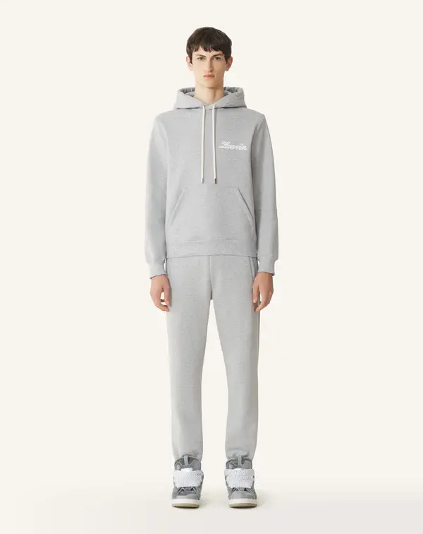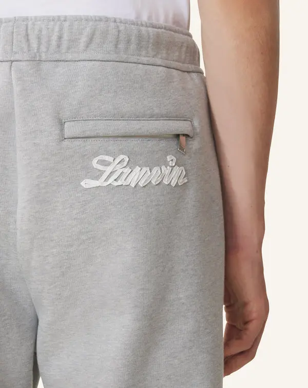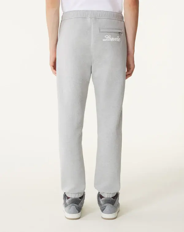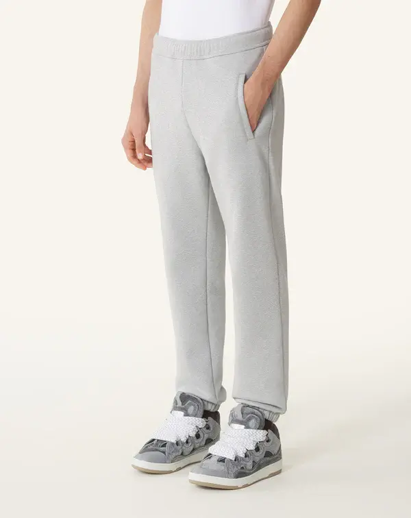 light grey elasticated waistband side pockets back pocket elasticated hem cotton