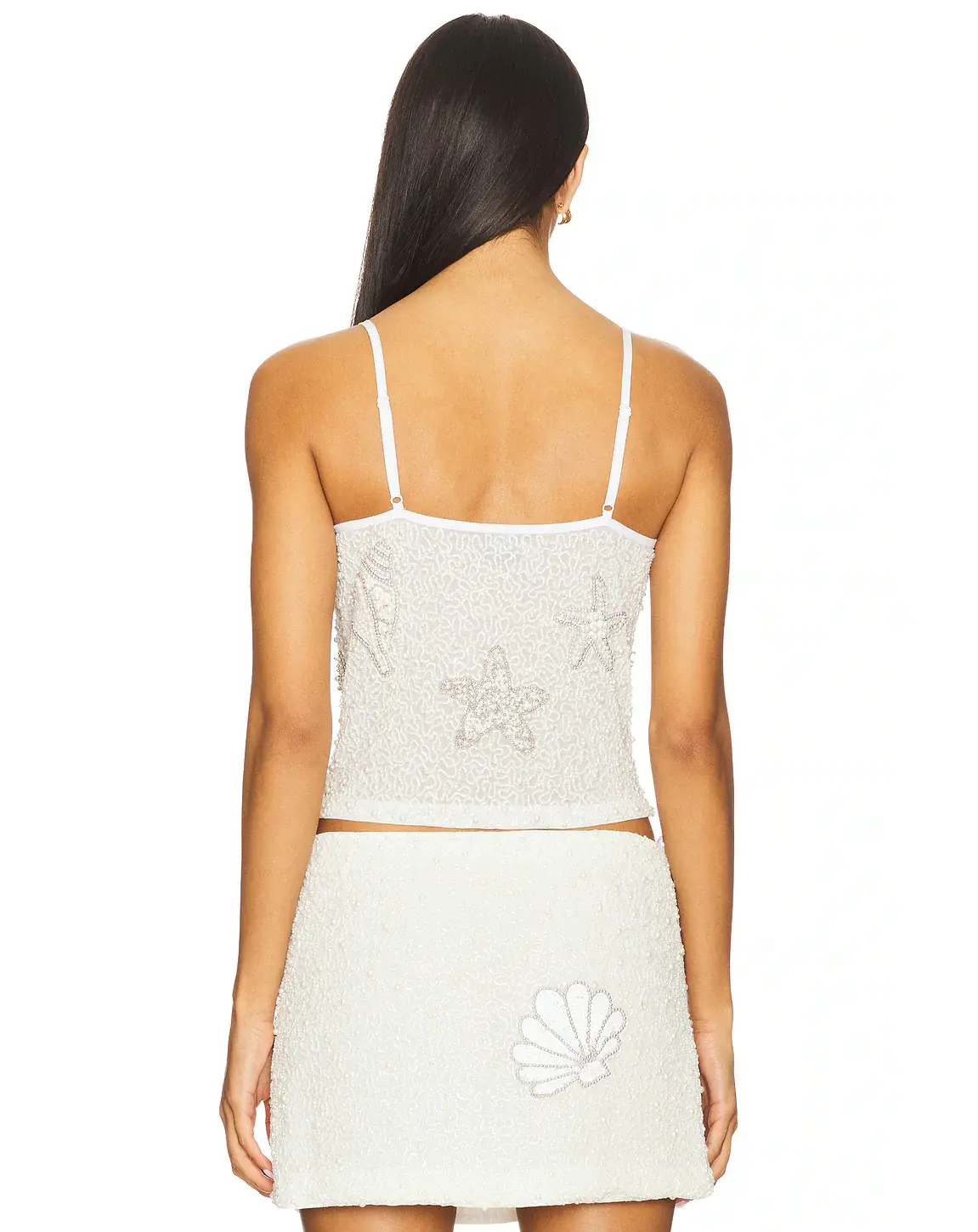 Color: Off White Beaded embellished fabric Adjustable shoulder straps Hidden side zipper closure 100% nylon Made in India Dry clean only Item not sold as a set Fits true to size, take your usual size