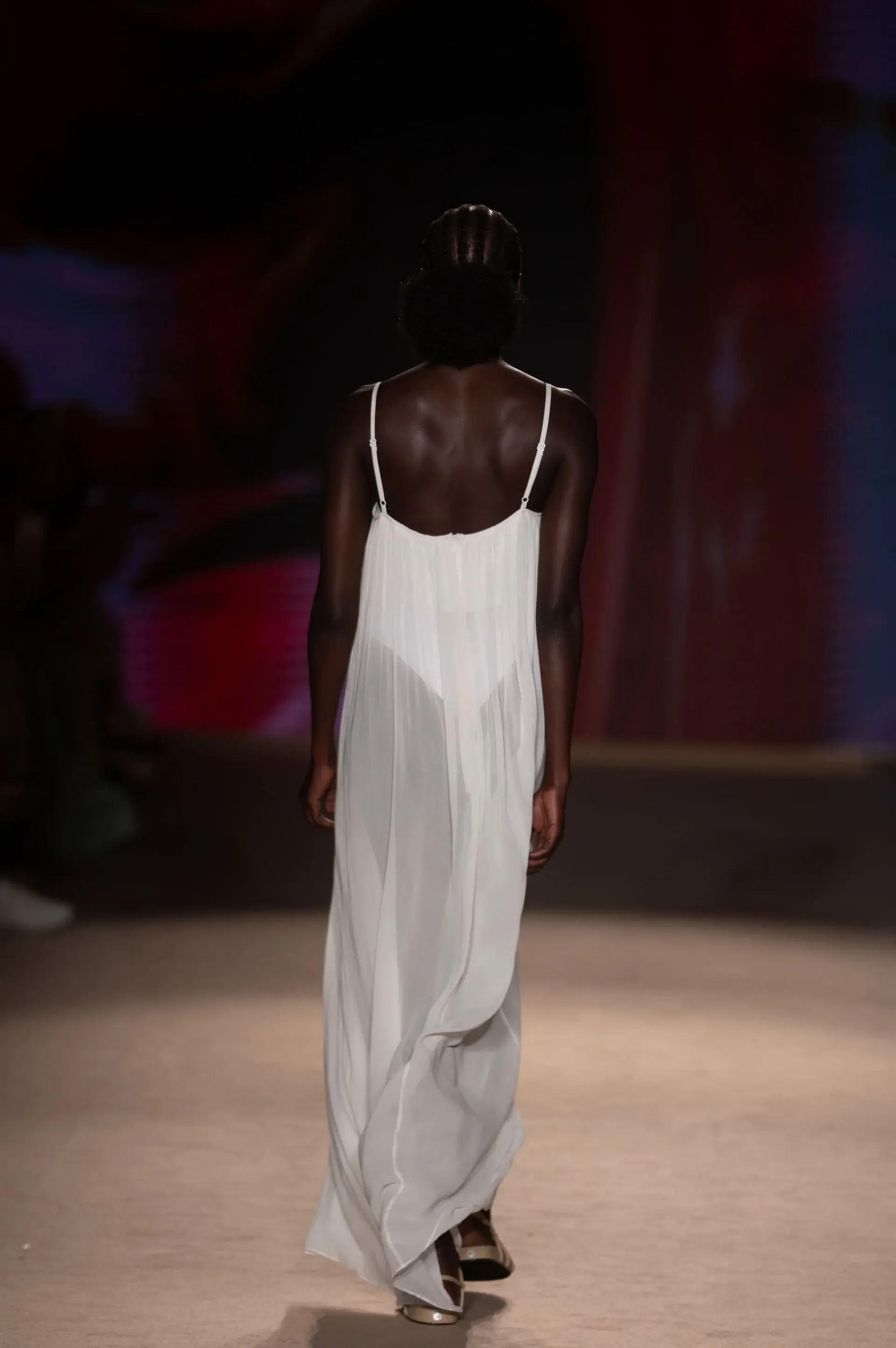 Sculptural, flowy maxi dress with a plunging chest cutout.