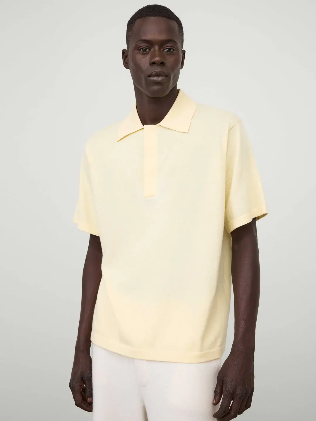 A sleek polo shirt, the Carl T-shirt is knitted in our fine knit cotton cashmere blend suggestive of jersey. The regular fit silhouette features a collared neckline with a concealed placket, short sleeves and a straight hem finished with ribbed details.