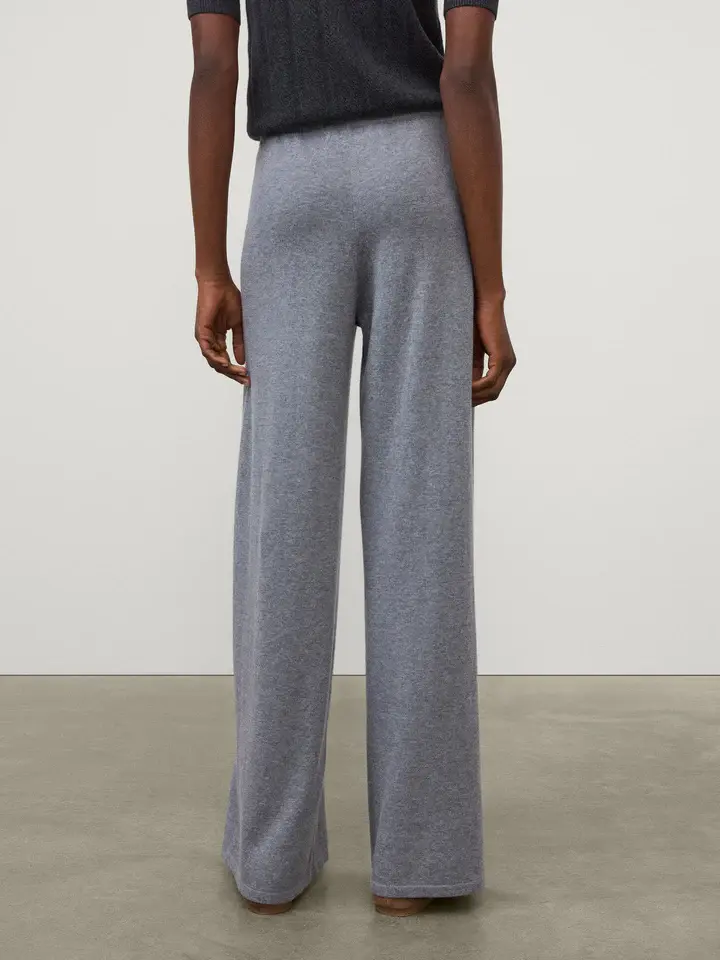 A relaxed everyday silhouette, the Aina trouser is crafted in fine knit cotton cashmere – a cooling and airy composition perfect for warm weather. The relaxed fit, wide leg silhouette sits comfortably at the waist supported by an elasticated waistband.