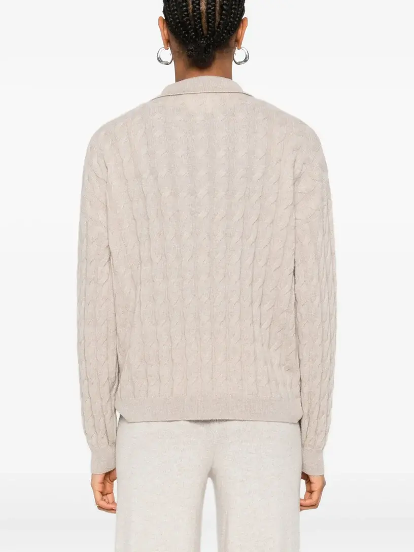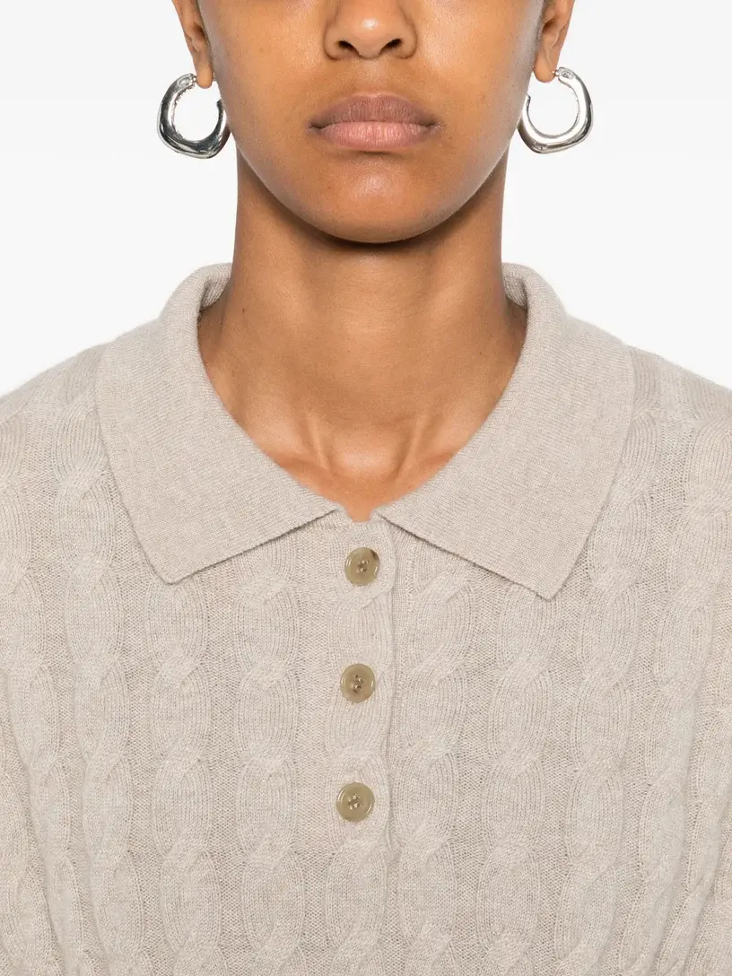 Cable-knit cashmere polo Front buttons Low armholes 100% cashmere Made in China