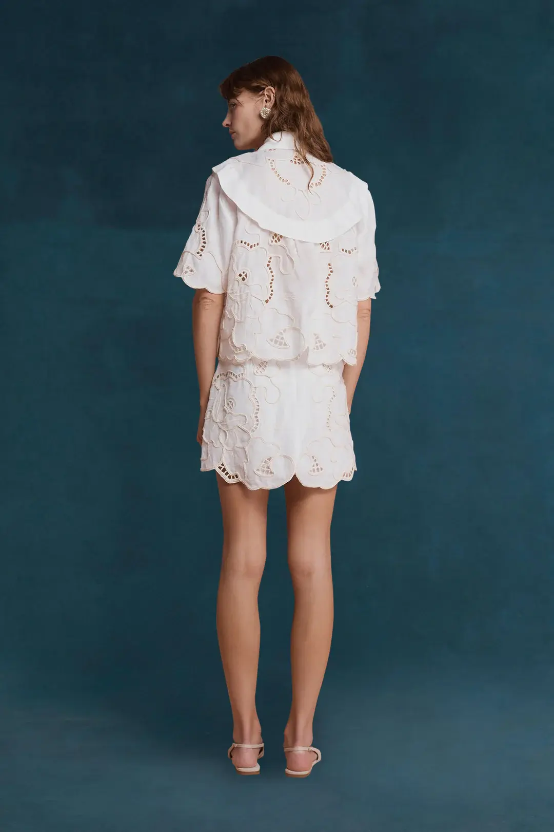 Embody effortless grace with the white Milicent skirt. Crafted from 100% linen, this piece exudes timeless elegance with intricate off-white broidery detailing. It features a scalloped hem and a soft flowing silhouette, marrying structure with fluidity for a look of effortless sophistication.