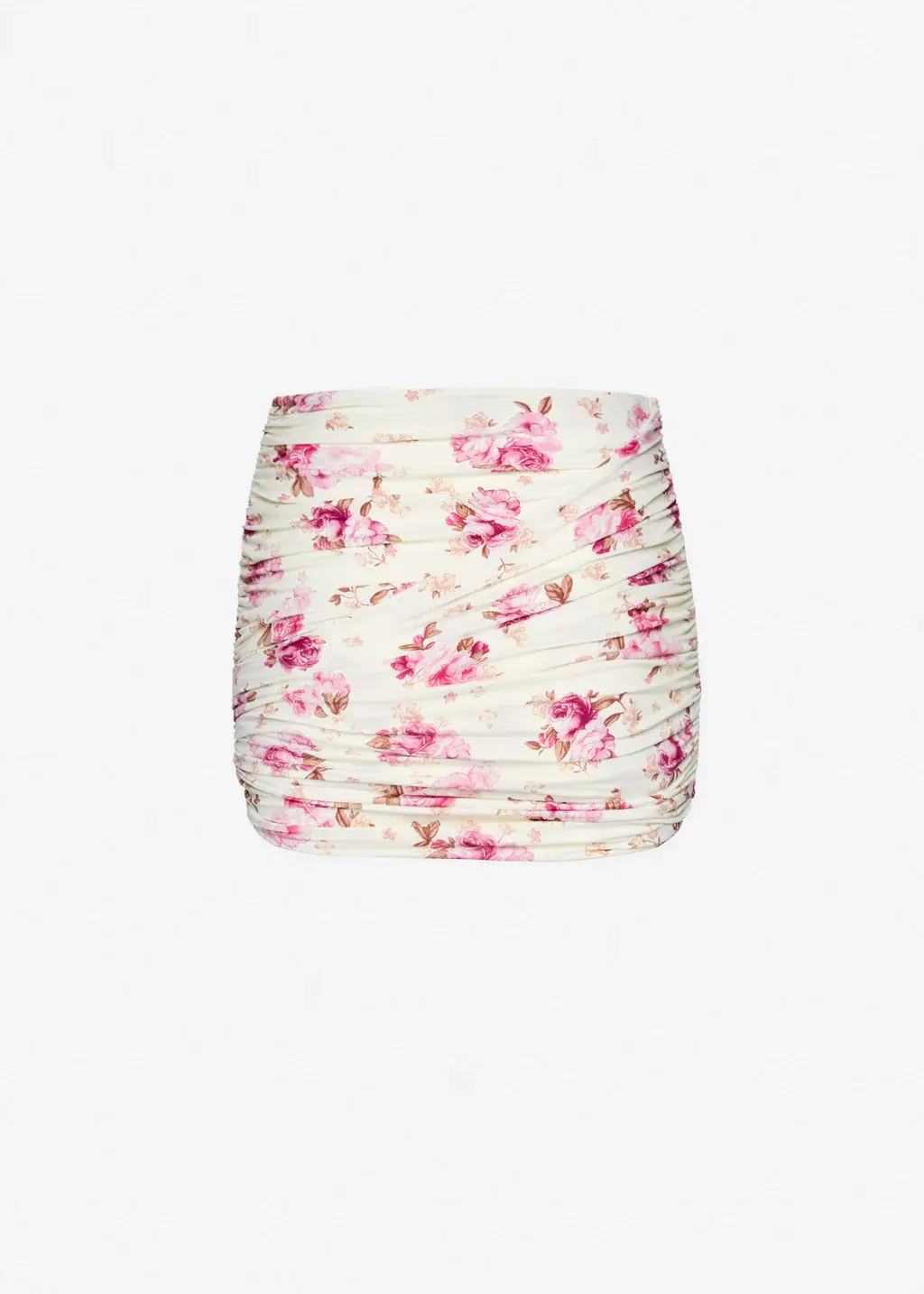 Draped mini swim skirt in cream floral print