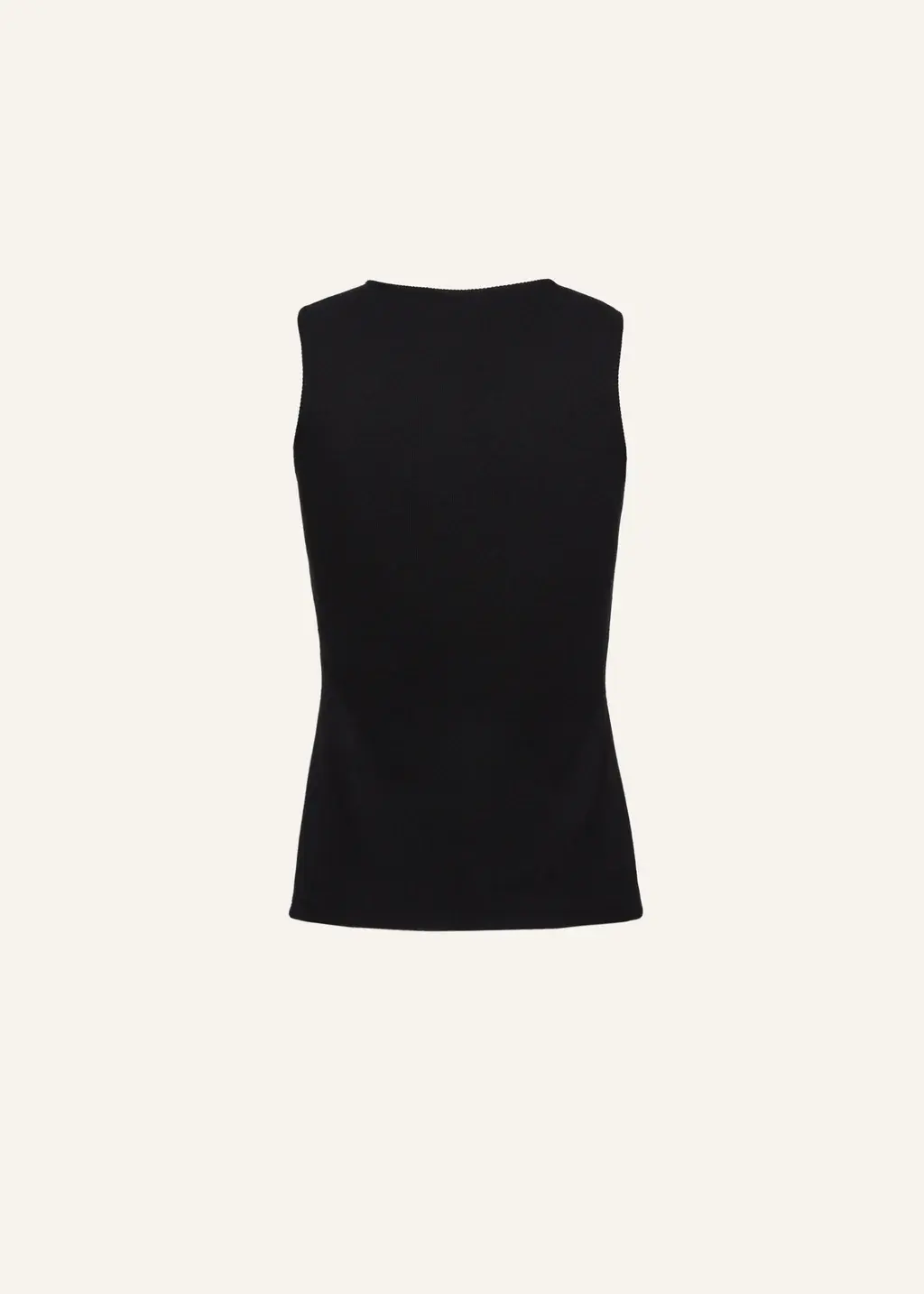 Magda's iconic crochet bra look is reinterpreted in a casual way, with a simple cotton tank top that shows off a handmade crochet bra on top.