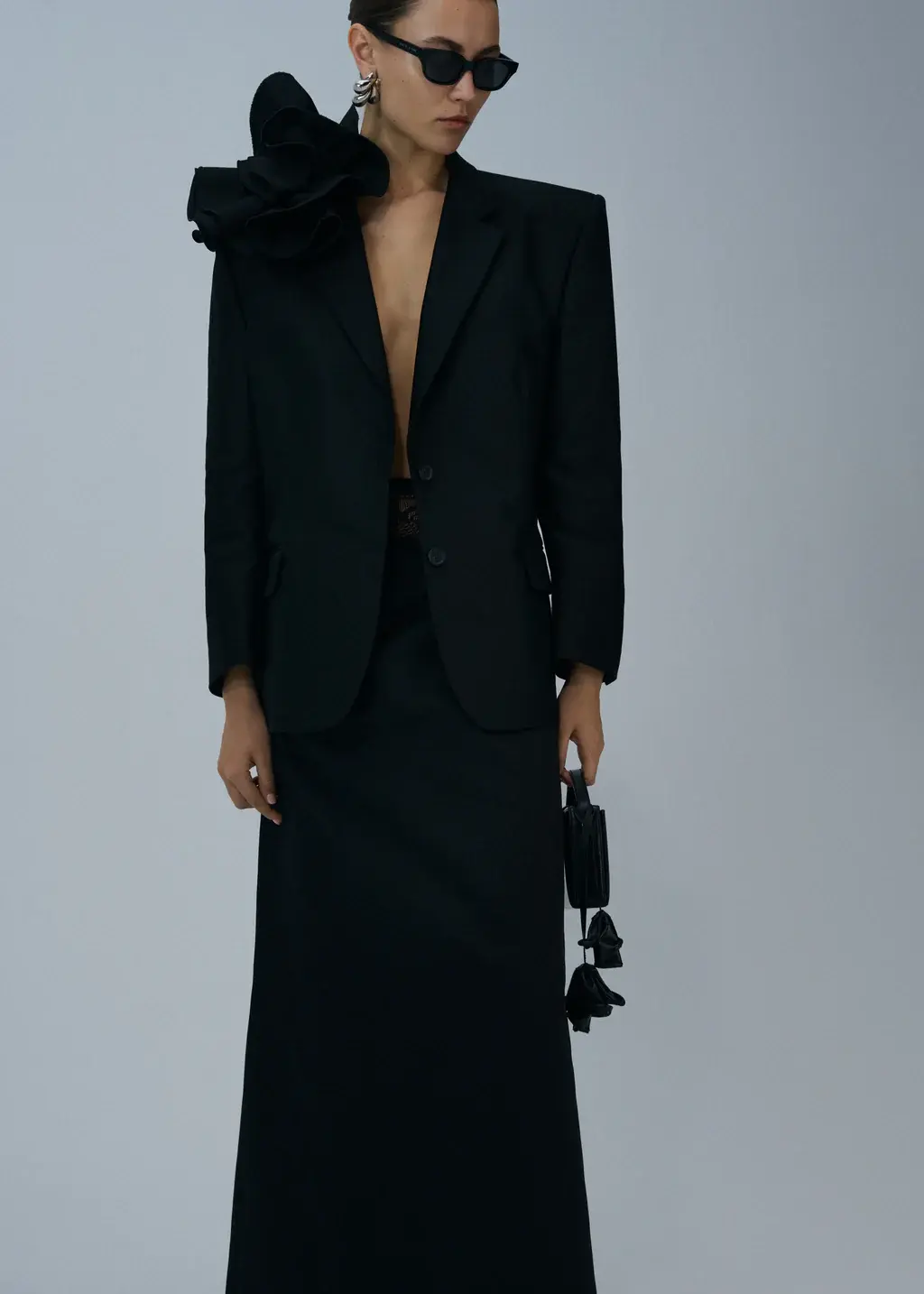 A classic oversized blazer with strong shoulders and a removable rose appliqué brooch for a feminine and undeniably Magda Butrym look. This season, the blazer is available in lightweight cotton.