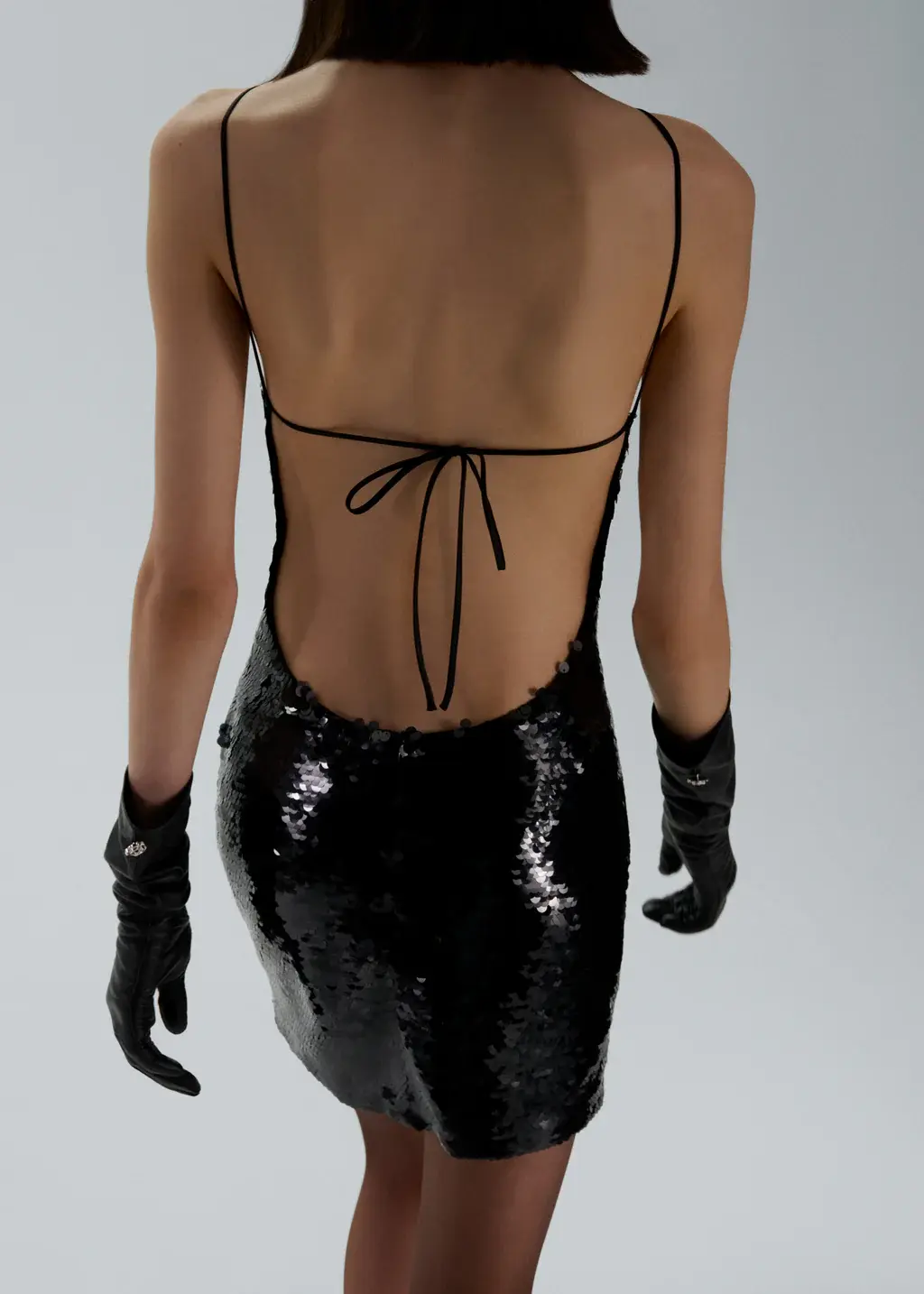 Choker sequin mini dress in black