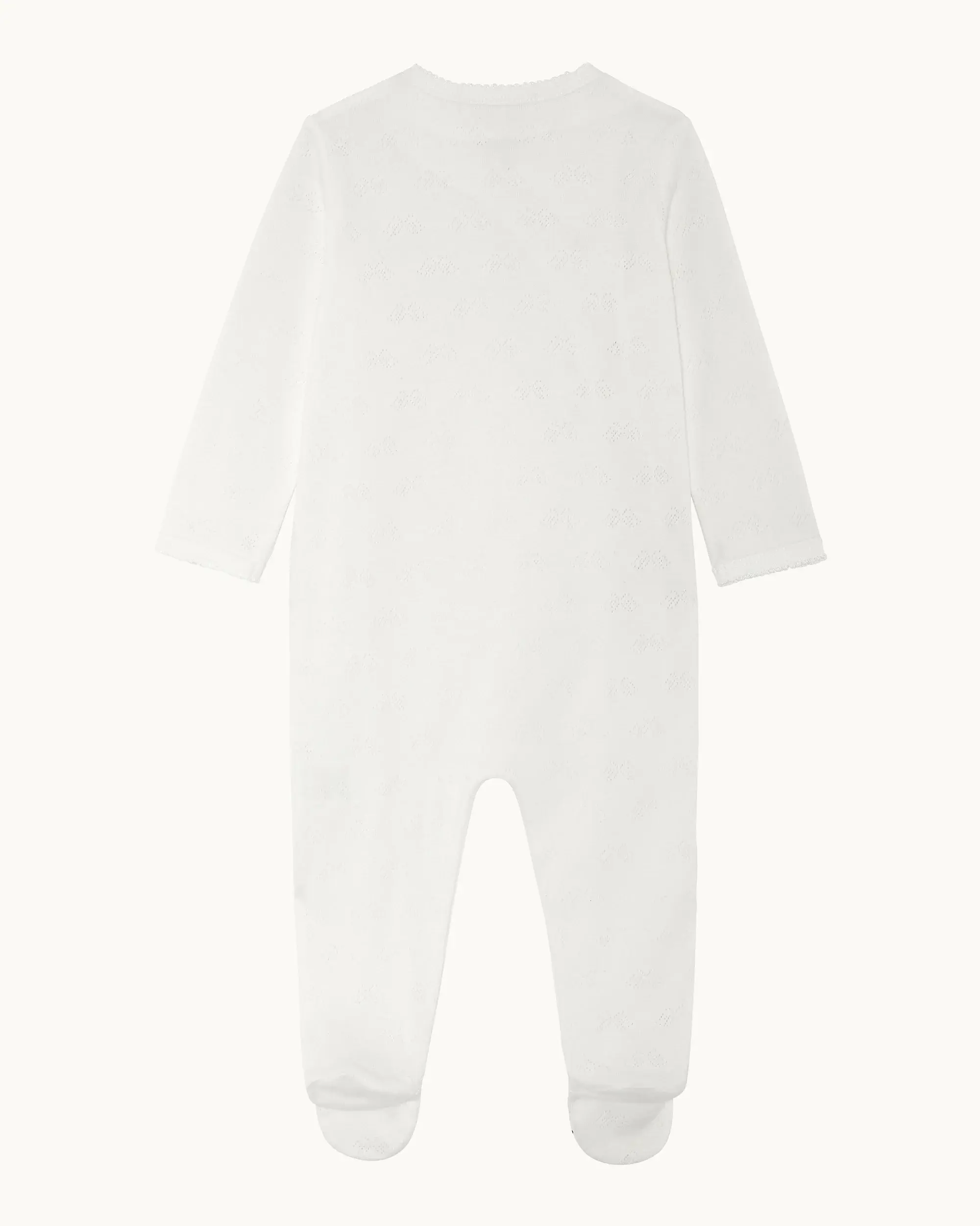Made from 100% cotton and featuring our signature Angel Wing pointelle design, Marie-Chantal’s sleepsuit is a newborn must-have.