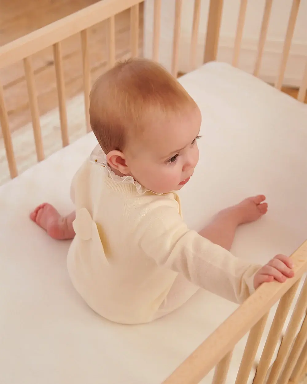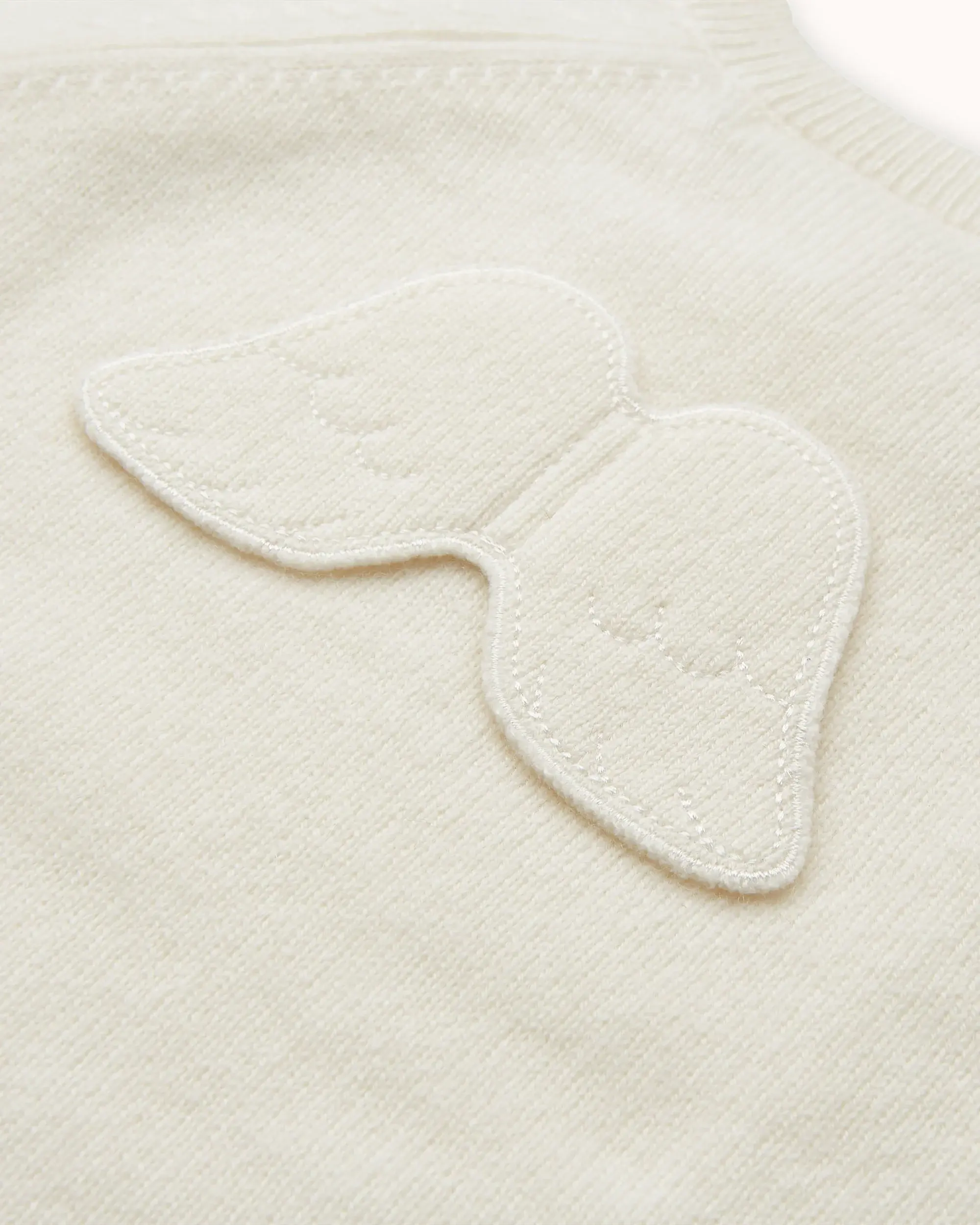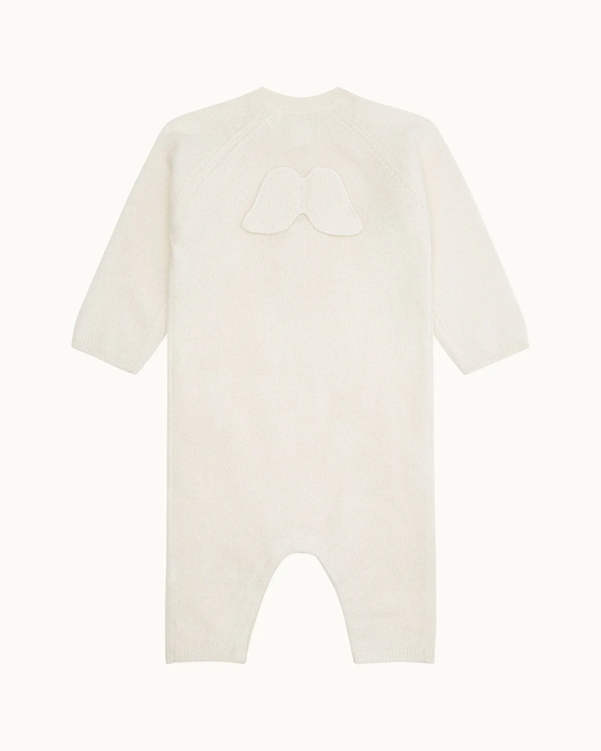 Made from the softest cashmere, the Ariel Cashmere Romper in ivory features our signature Angel Wing, designed to keep your little one cosy.