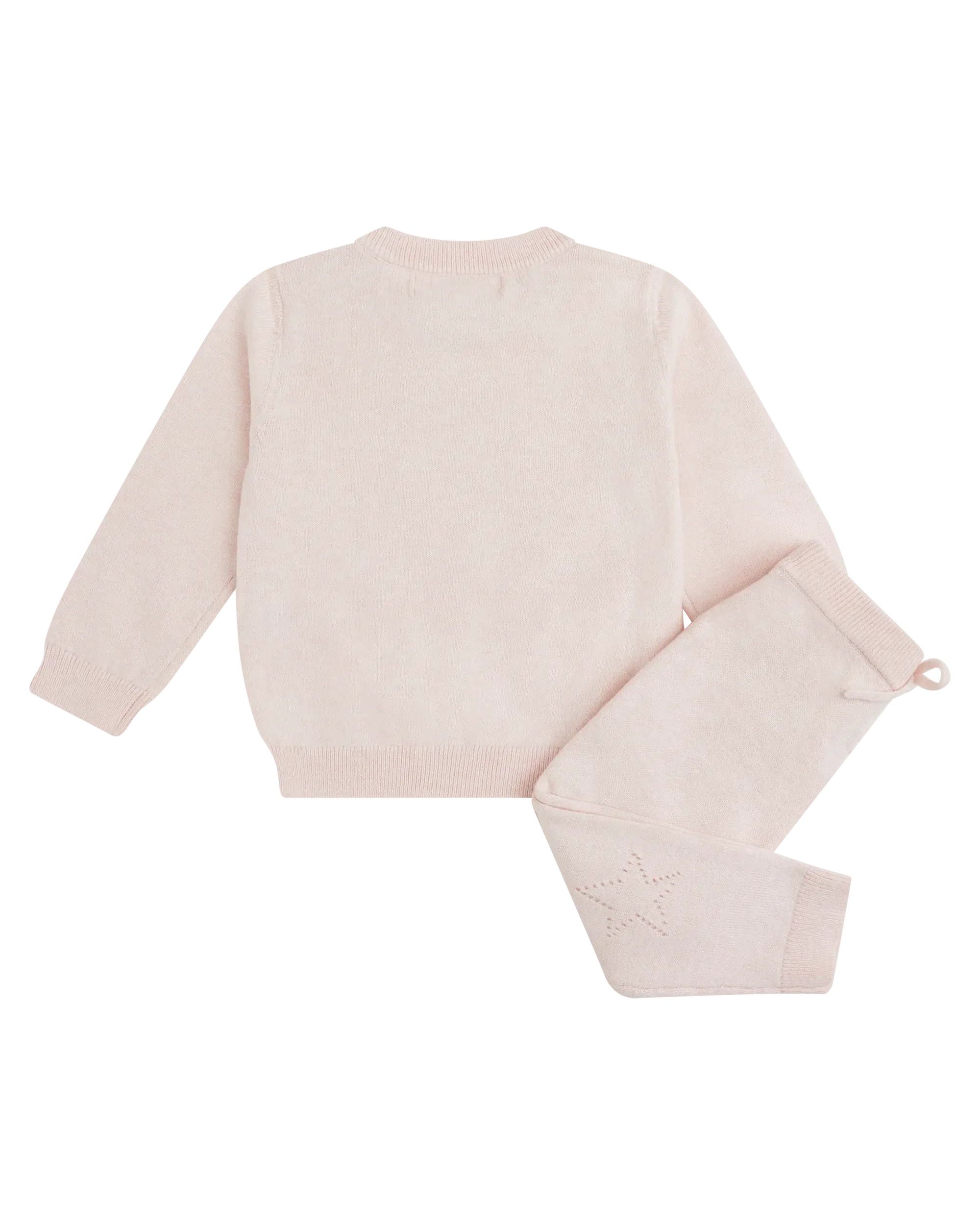 Enjoy watching your baby crawl in comfort while wearing our cotton-cashmere 2 piece crawler sets. Made from a super soft cotton-cashmere blend, this sweater and leggings set features a cute star and heart pointelle detail on the knees and chest.