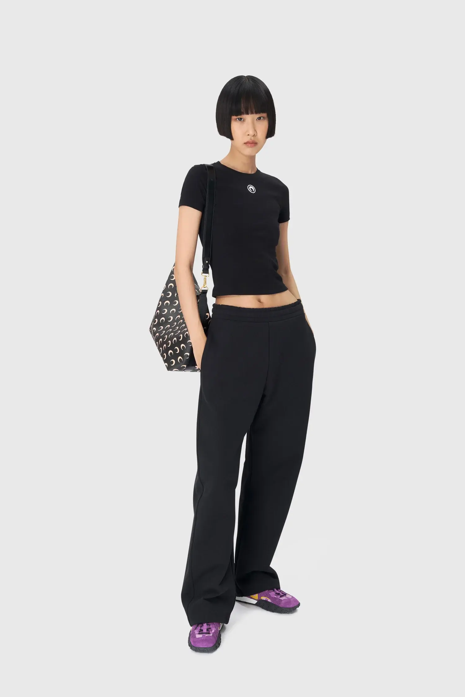 All of the cotton that Marine Serre sources for the BORDERLINE collection is certified GOTS (Global Organic Textile Standard). This certification is the worldwide leading textile processing standard for organic fibers and provides credible assurance of responsible manufacturing with the least chemical inputs. In terms of shapes, the House proposes a wide range of everyday styles taken directly from the sportswear universe. 95% Organic Cotton, 5% Elastane