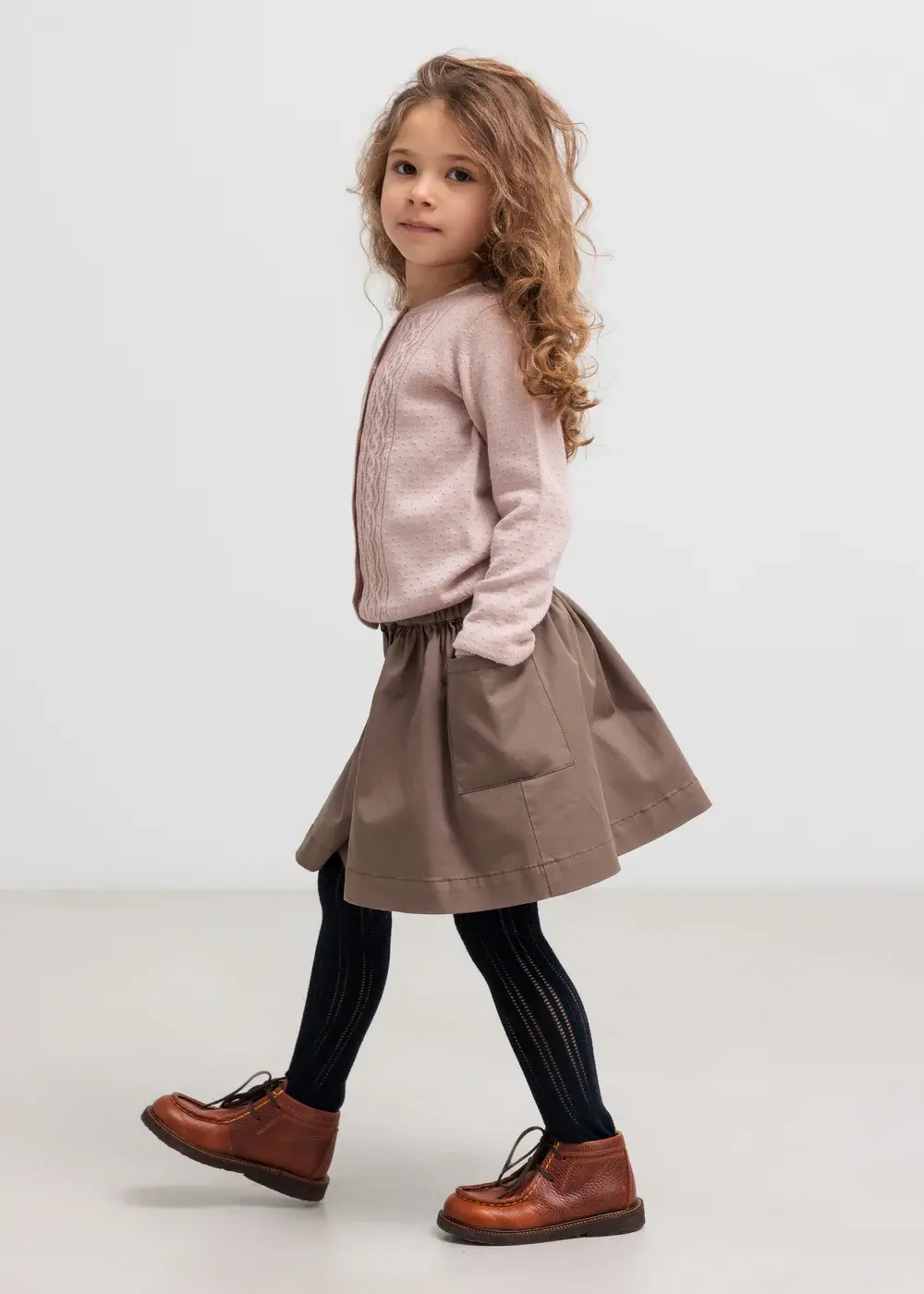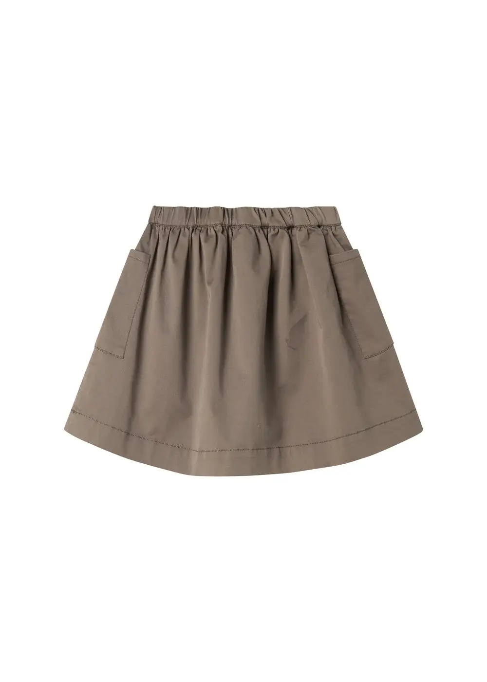 Chino skirt with wide leg and two spacious side pockets. The skirt has an elastic waist and the length is just above the knee.