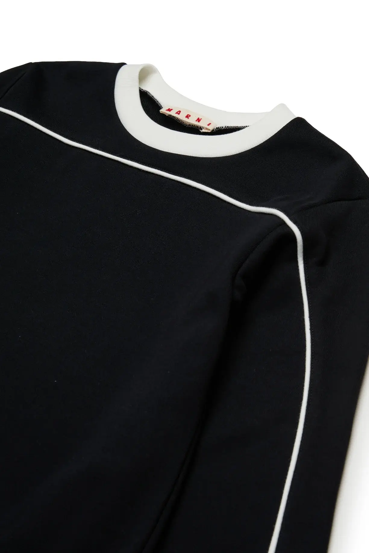 Short fleece dress with contrasting piping and a handmade Marni logo embroidered at the hem. The side slits accentuate the silhouette, giving the piece a dynamic and contemporary look.