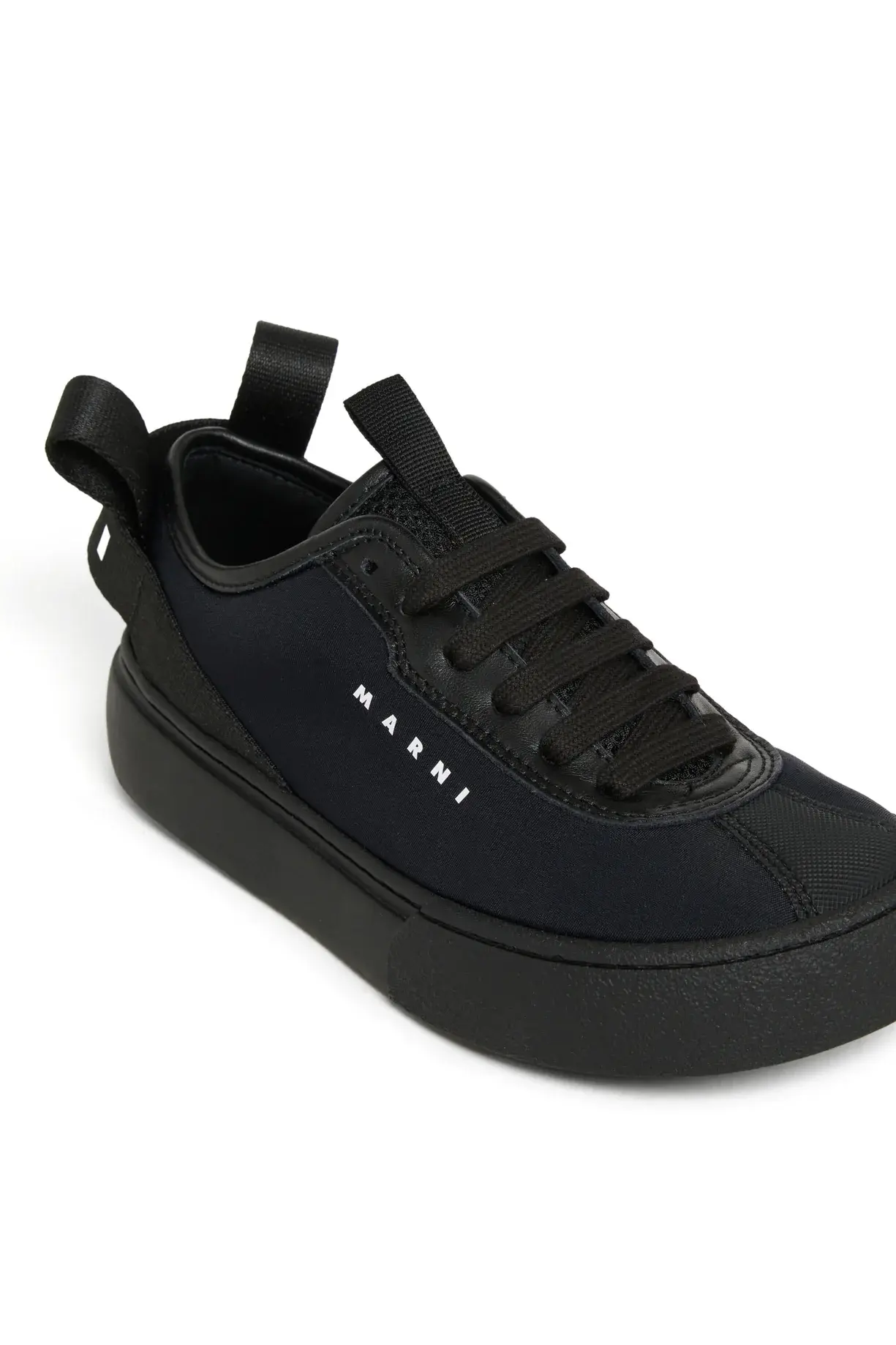 Sneakers with contrasting logo on the side and heel, featuring a minimalist design and technical fabric details.