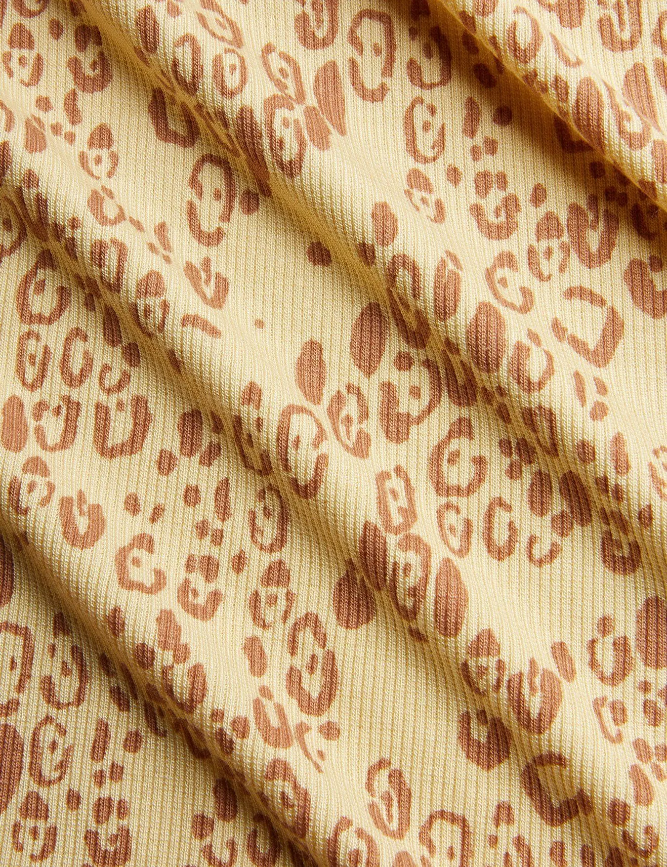 Newborn set with wrap bodysuit, leggings and a hat with an all over leopard print, made of 95% Modal and 5% Elastane. The bodysuit is designed with a snap closure at the front for easy dressing, the leggings have a soft elastic at the waist with cuffs at the ends and the hat is designed with strings that can be tied under the chin.