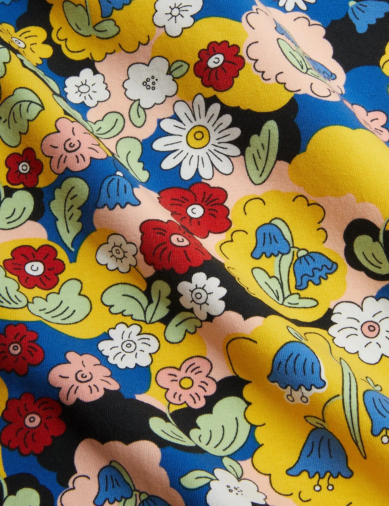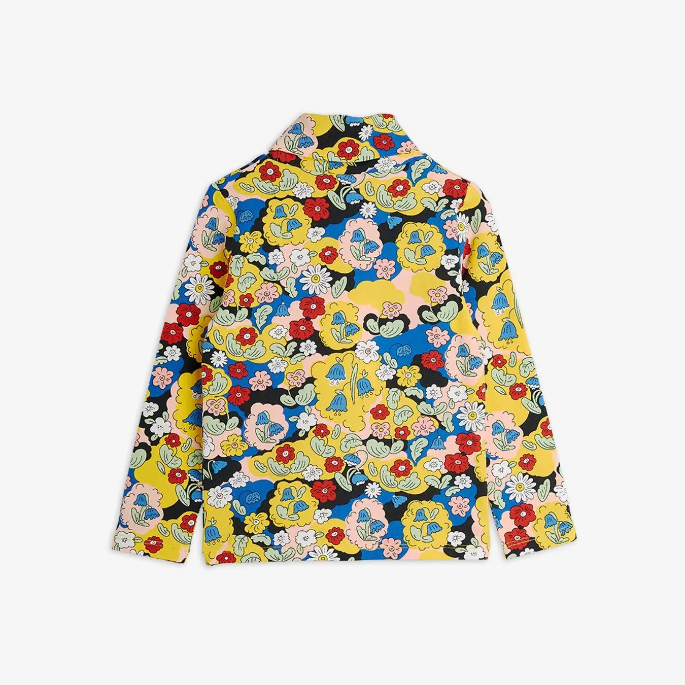 Long-sleeved polo shirt made from GOTS-certified organic cotton with a hint of stretch. Design with an all-over floral pattern. The model is 111 cm tall and wears a size 104/110.