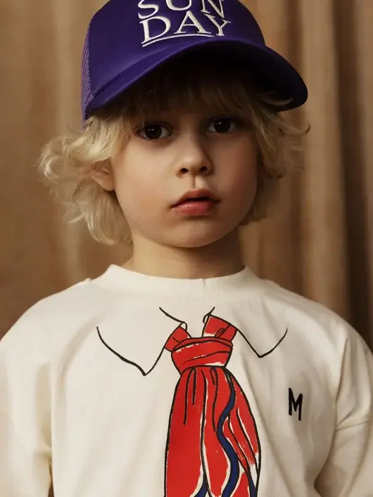 Short sleeved T-shirt with a scarf and collar print, made from 100 % GOTS certified organic cotton. Cut for a relaxed fit. Designed with an M embroidery in front.