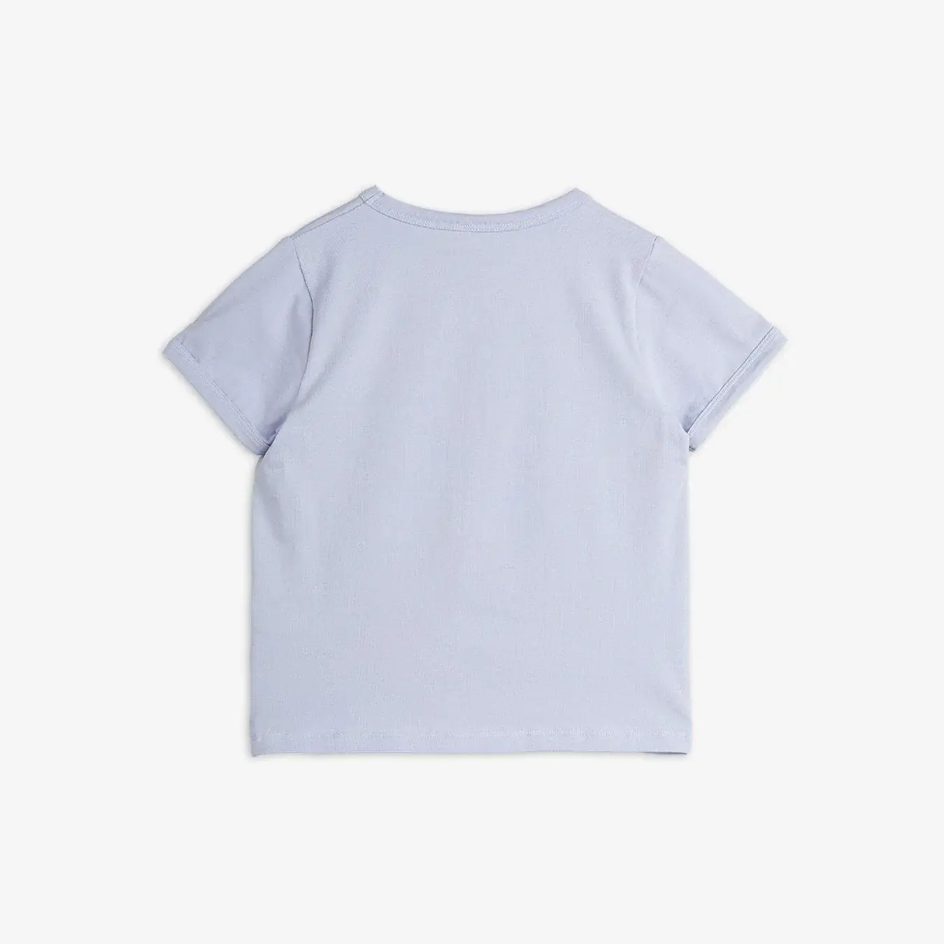 Slim T-shirt made of organic cotton with a touch of stretch. Has a multi-colored bird print on the front and finishes with a tie at the neck.